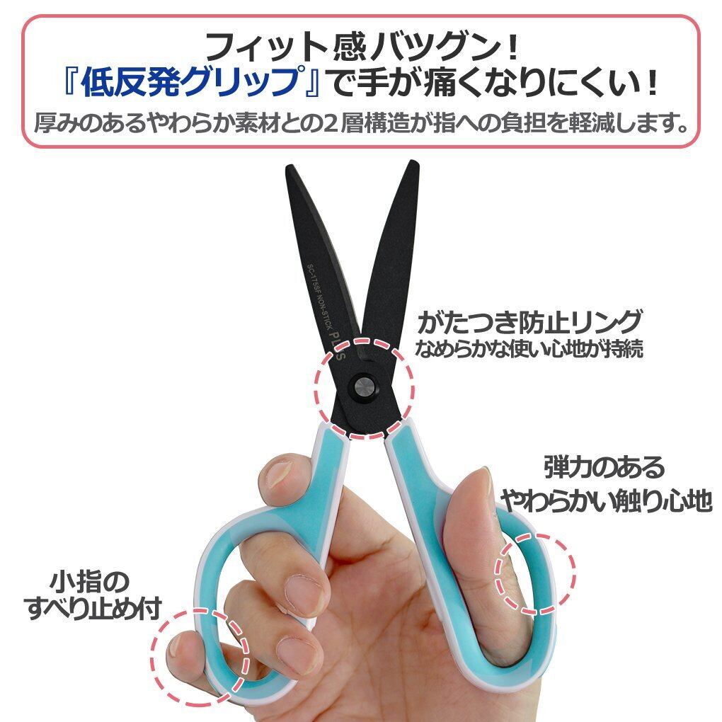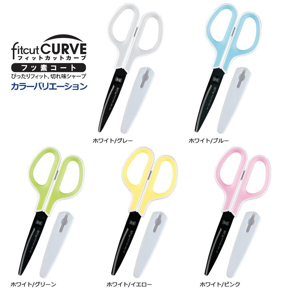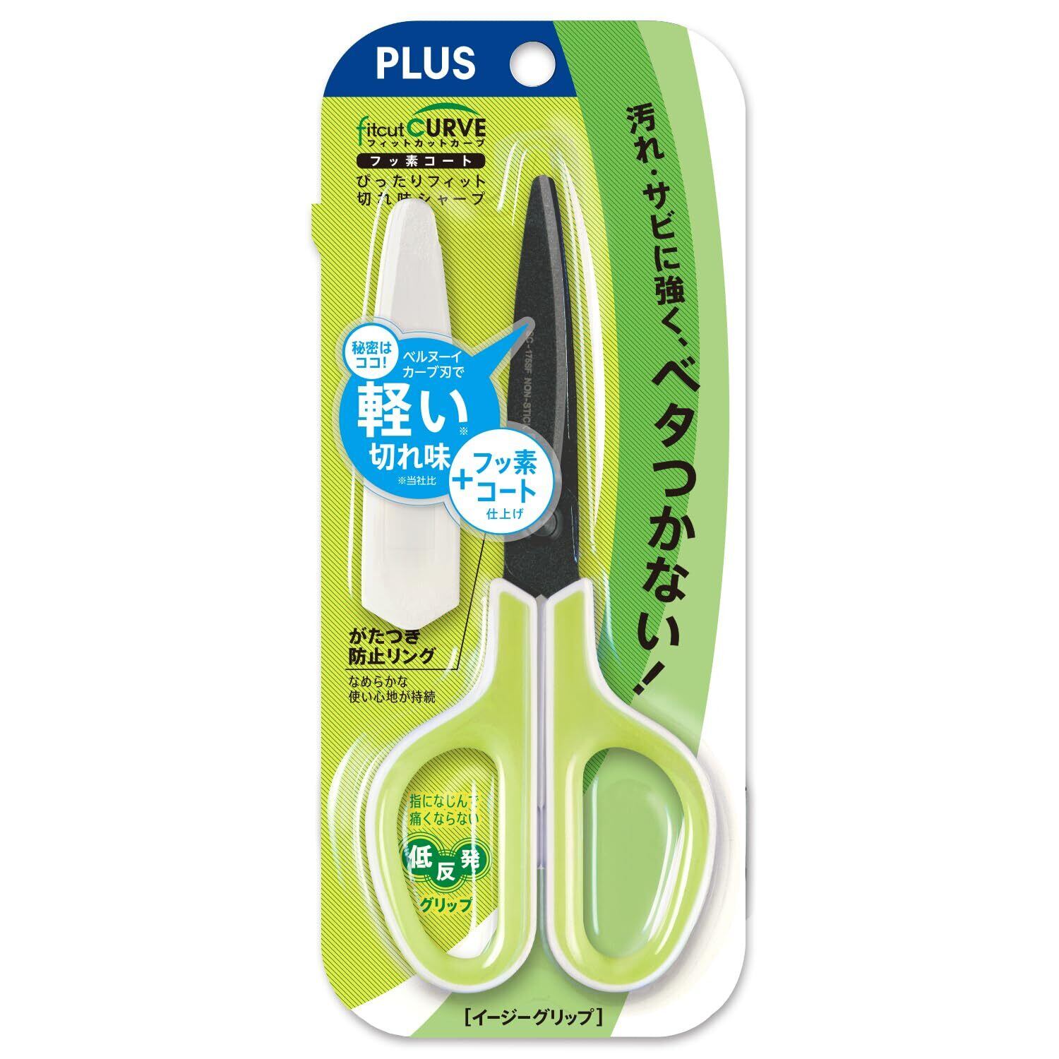 プラス はさみ フィットカットカーブ フッ素コート 低反発グリップ SC-175SF ホワイト/グリーン 34-545