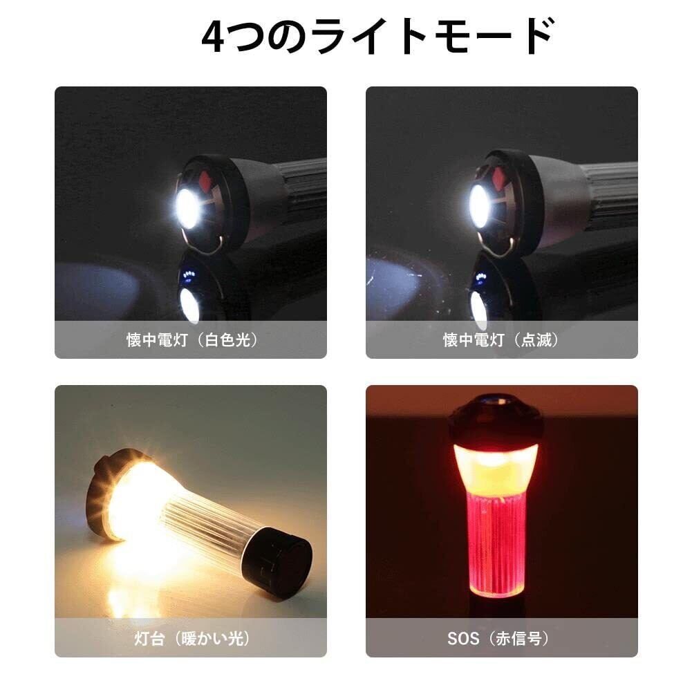 【3つの光源・4つ点灯モード・無段階調光】:LEDランタンが3つの光源:暖かい光/白い光/赤い光。4点灯モード:懐中電灯、白点滅モード、ランタン、赤SOS信号灯。LEDライトや懐中電灯モードでは、長押しで調光できる無段階輝度調整可能、周囲の環境に合わせて適切な光や雰囲気を作り出すことができます。 懐中電灯モードでは、ボタンをすばやく2回押して白点滅モードモードに入り。