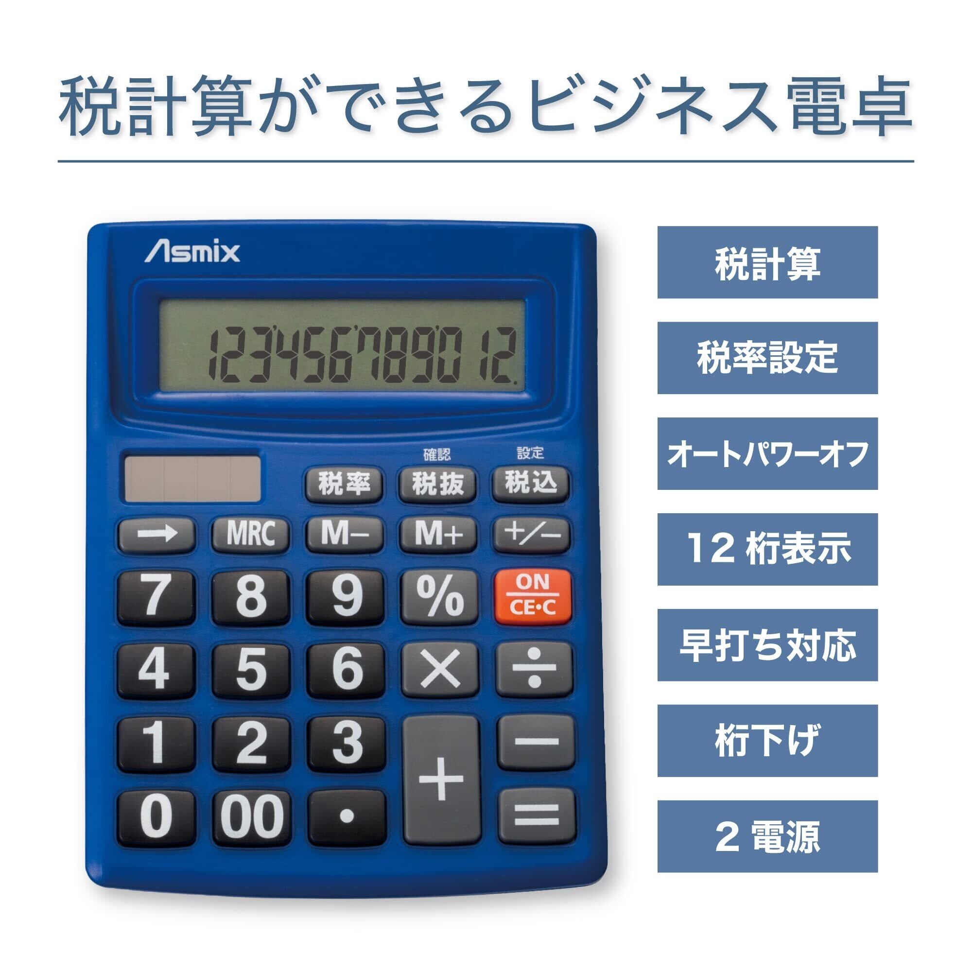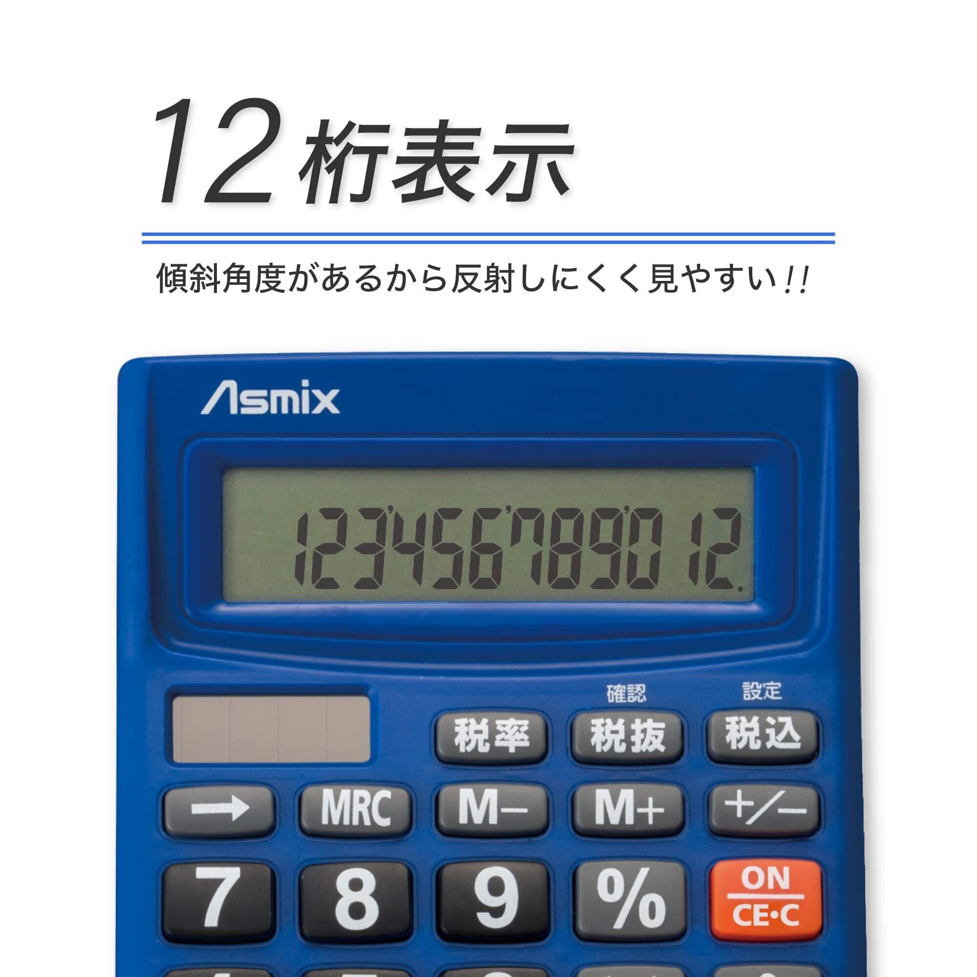 アスカ 電卓 税計算 C1234B ブルー 12桁