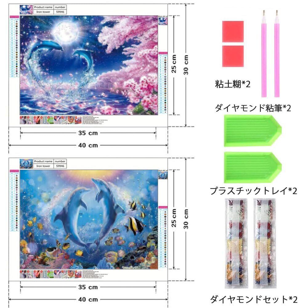 サムコス ダイヤモンドアート キット ダイヤモンドの絵画 2個セット 可愛い きれい 全面貼り付け ダイヤモンドアート 5D 大人の子供 初心者 DIY 手芸キット 家の壁の装飾