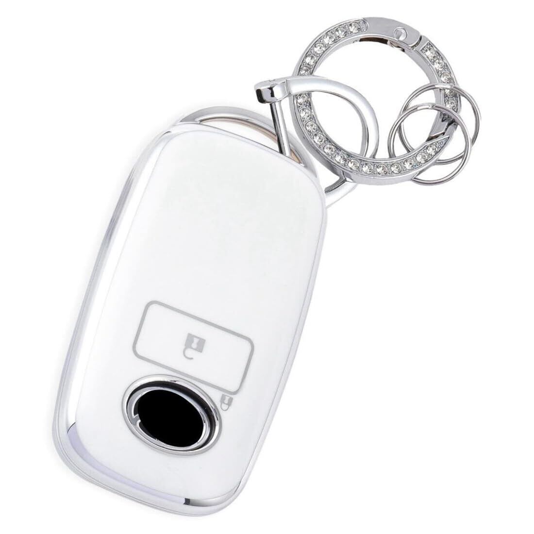 キーケース適合トヨタ ライズ ダイハツ ロッキー 新型タフト キー カバー ルーミー キーホルダー キラキラ (2ボタン、 シルバーホワイト)