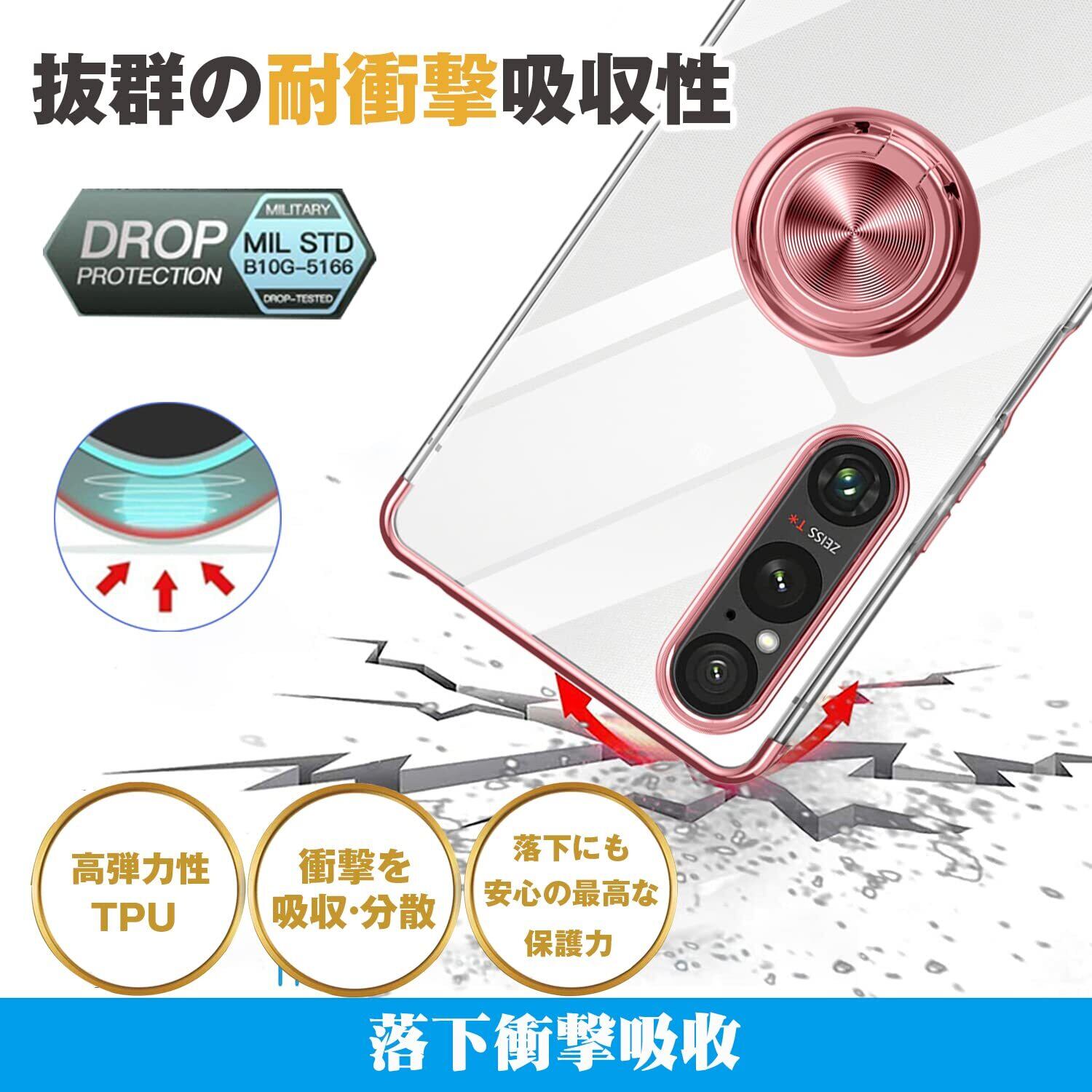 【リング付き機能】ケースを横置きにするとスタンド機能になり、持たず動画鑑賞などを楽しむことができます。リングは360度回転可能、180角度調節可能。一指着る式で、指がリングに通り抜け、片手で携帯を操作でき、落下防止します。
