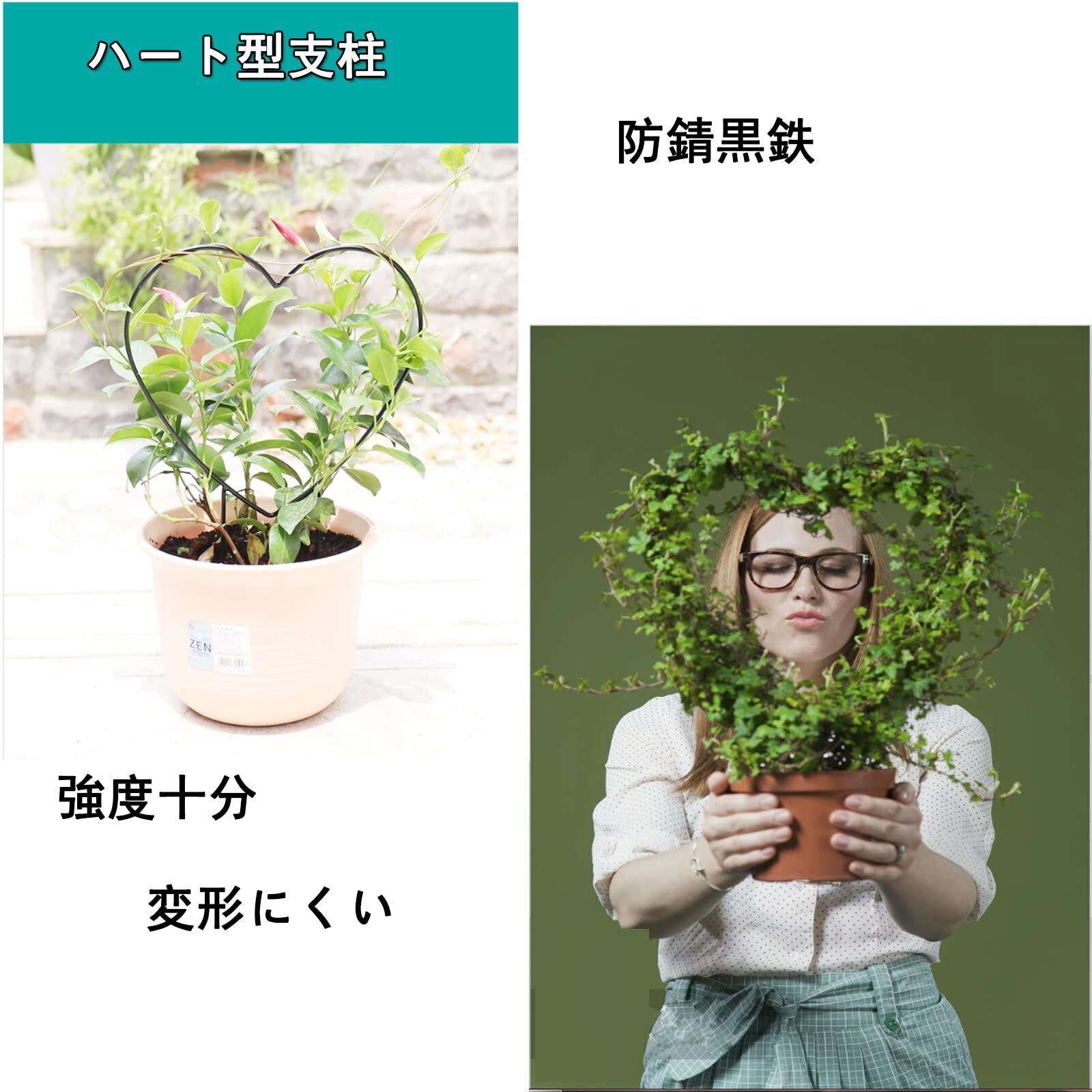 Vanow 園芸支柱*2 32cm*23cm ハート型支柱 観葉用 DIY 植物サポート 耐久 防錆 使いやすい 装飾用