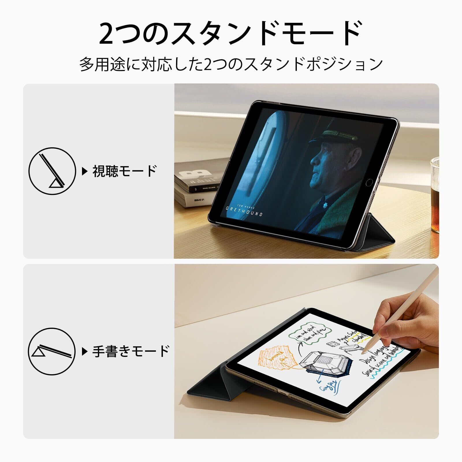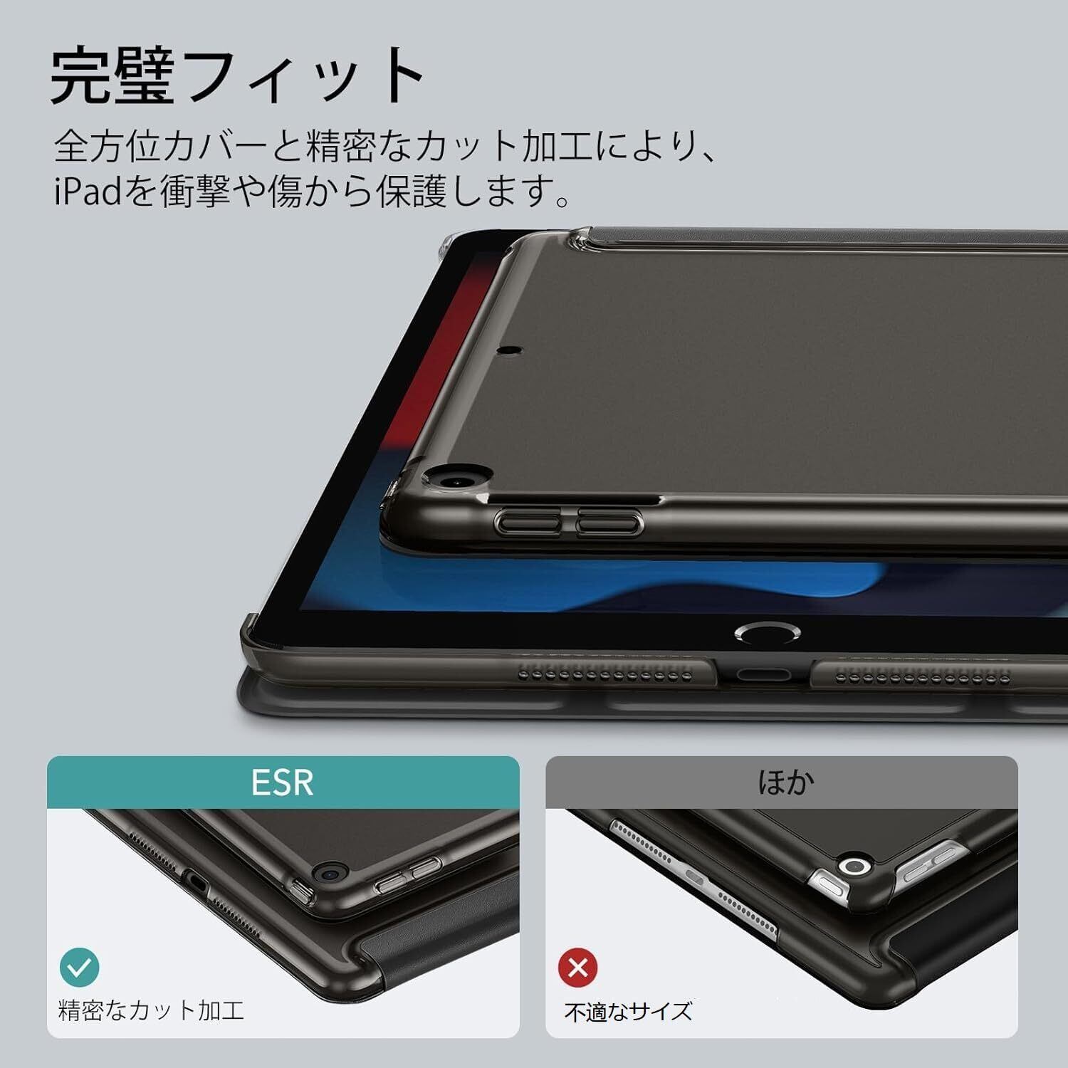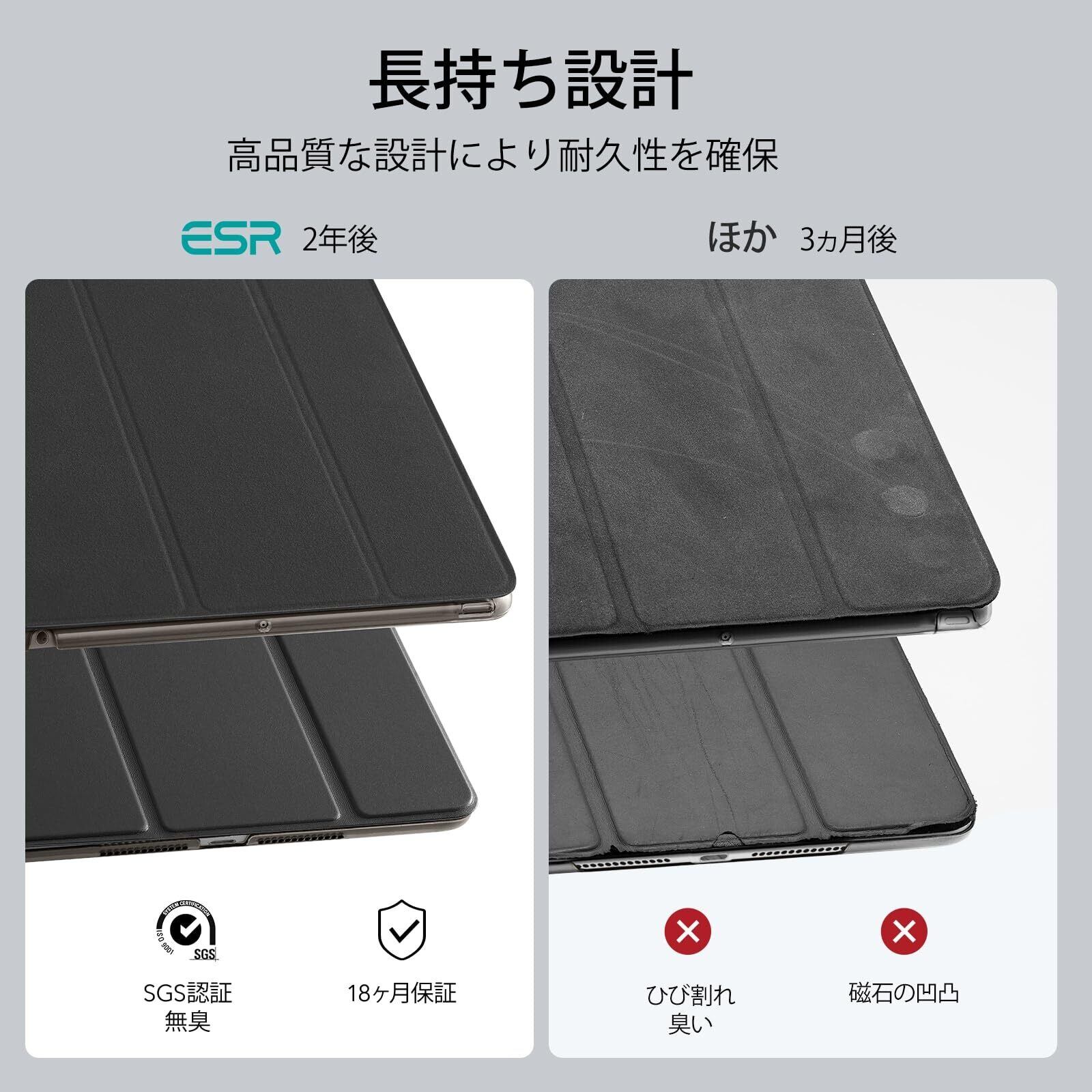 ESR iPad 9世代 ケース ipad カバー 第9/8/7世代通用 (2021/2020/2019モデル) 10.2インチ 半透明 指紋防止 三つ折りスタンド オートスリープ/ウェイク機能 薄型 軽量 傷防止 耐衝撃 ハードカバー ブラック