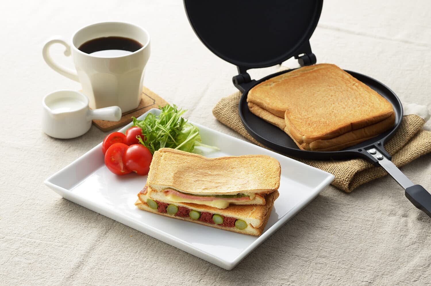 ヨシカワ(Yoshikawa) ホットサンドメーカー ガス火専用 あつあつマルチサンドパン 全長41.5×径18.0×高3.4cm ブラック アウトドア キャンプ SJ3208