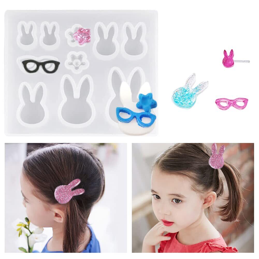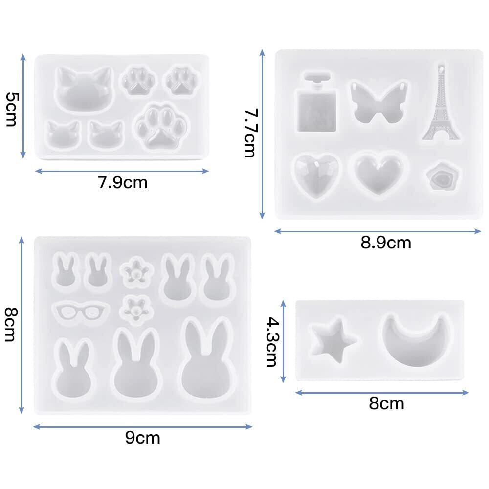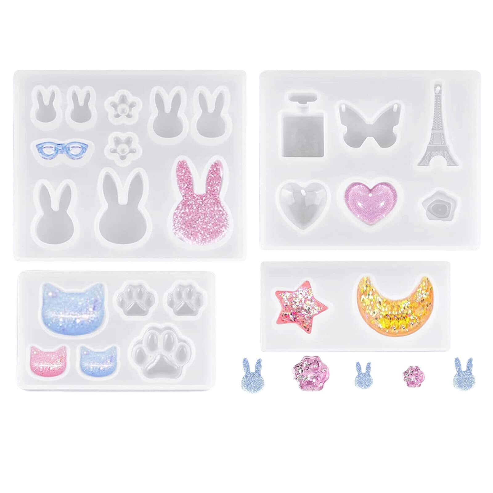 サムコス シリコンモールド 4個セット 星月 うさぎ メガネ ネコ エポキシ樹脂 UVレジン ソフトモールド DIY 手芸 ネックレス レジンアクセサリー ペンダント パーツ 作成 樹脂 工芸品 抜き型