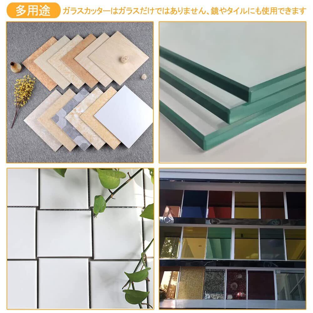 【多用途】 ガラスカッターはガラスだけではありません。鏡やタイルにも使用できます。切断板厚は3-12mm、直線・曲線切り可能。