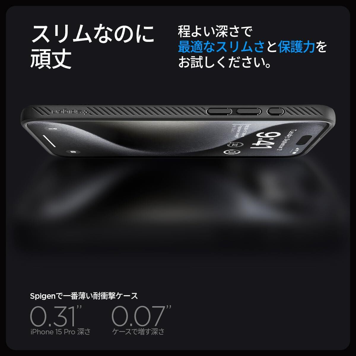 Spigen 【創業18年の技術力】 iPhone 15 Pro ケース 耐衝撃 薄型 ストラップホール 軽量 さらさら 米軍MIL規格取得 2重構造 レンズ保護 指紋防止 擦り傷防止 マット仕上げ ワイヤレス充電対応 リキッド・エアー ACS06704 (マット・ブラック)