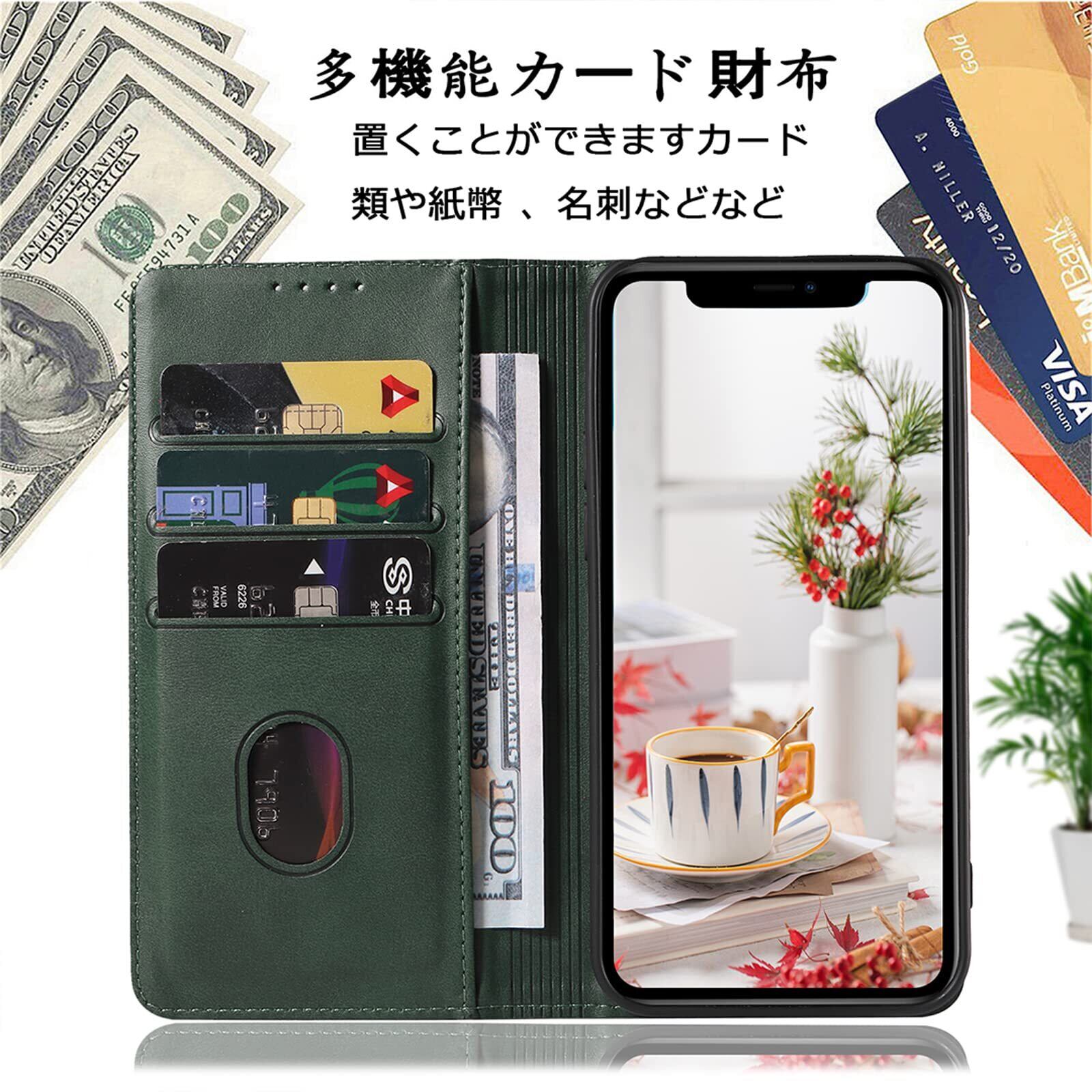 iPhone 11 ケース イフォン11 スマホケース 手帳型 携帯カバー レザー 耐衝撃 軽量 着脱しやすい 放熱性 マグネット式 カード収納 スタンド機能 iphone 11 対応 360度保護 PinLiSheng (グリーン, iphone 11)