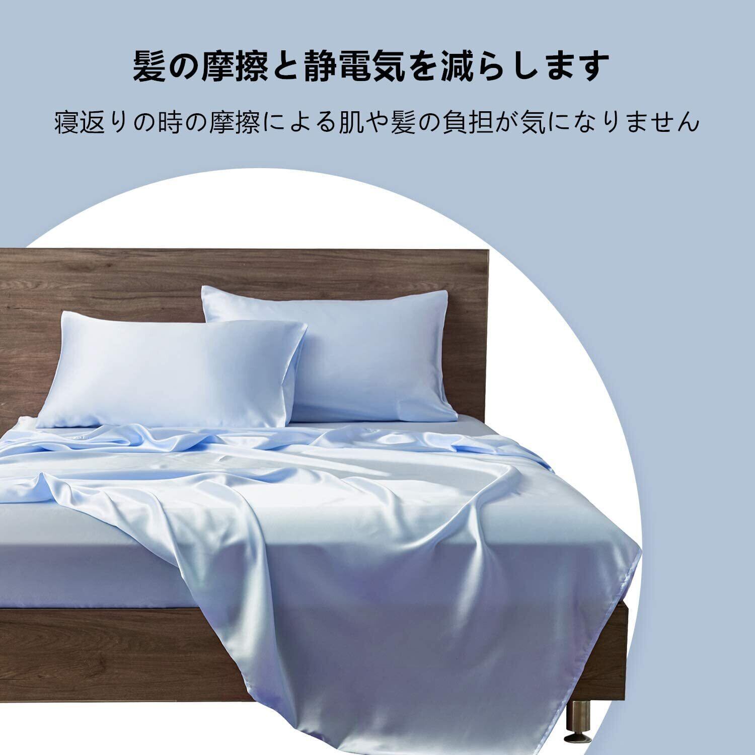 枕カバー 2枚セット サテンの枕カバー 封筒式ピローケース 美肌 美髪 両面シルクタイプ 滑らかな材質 静電気防止 (50*70, 空色)