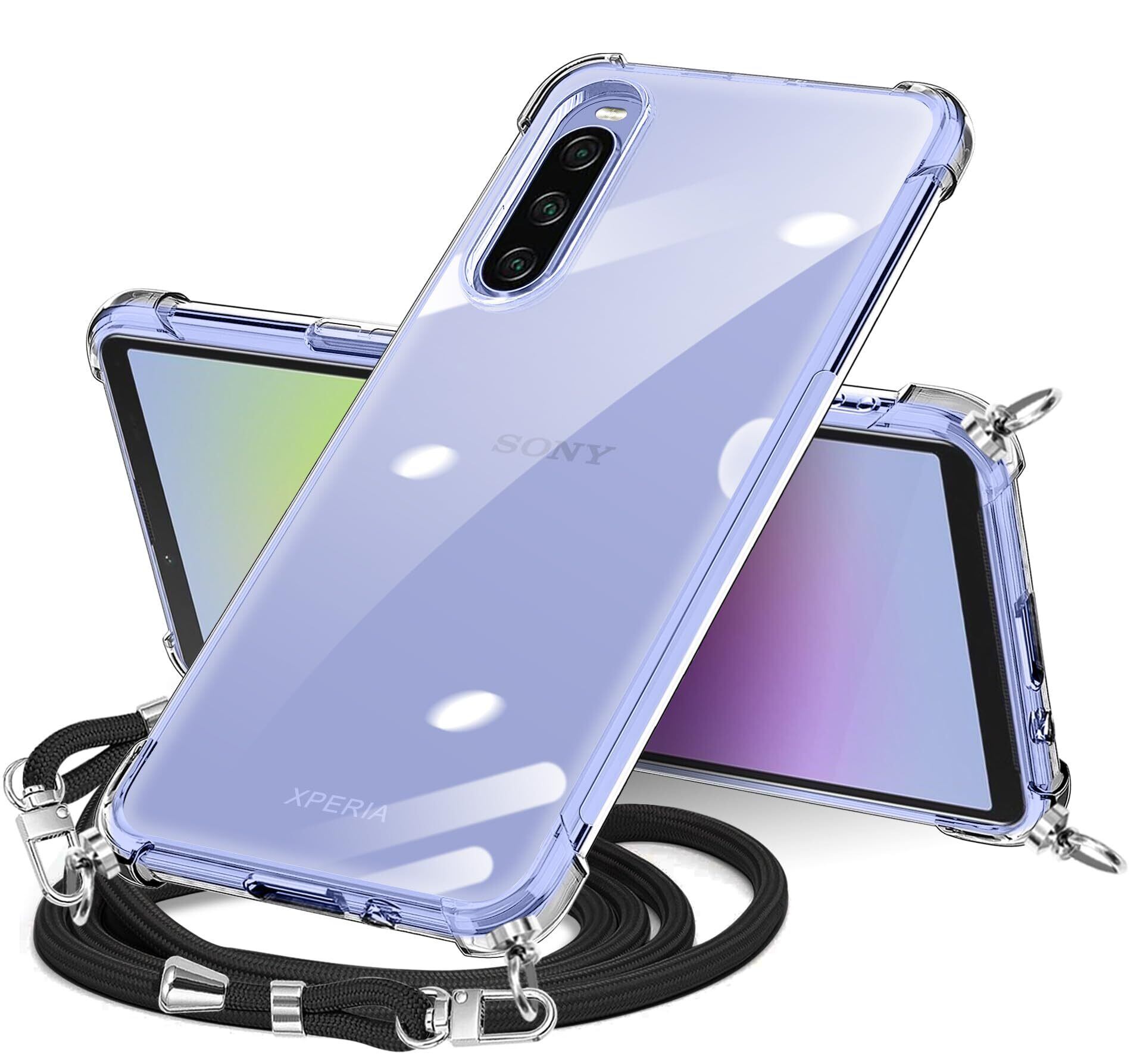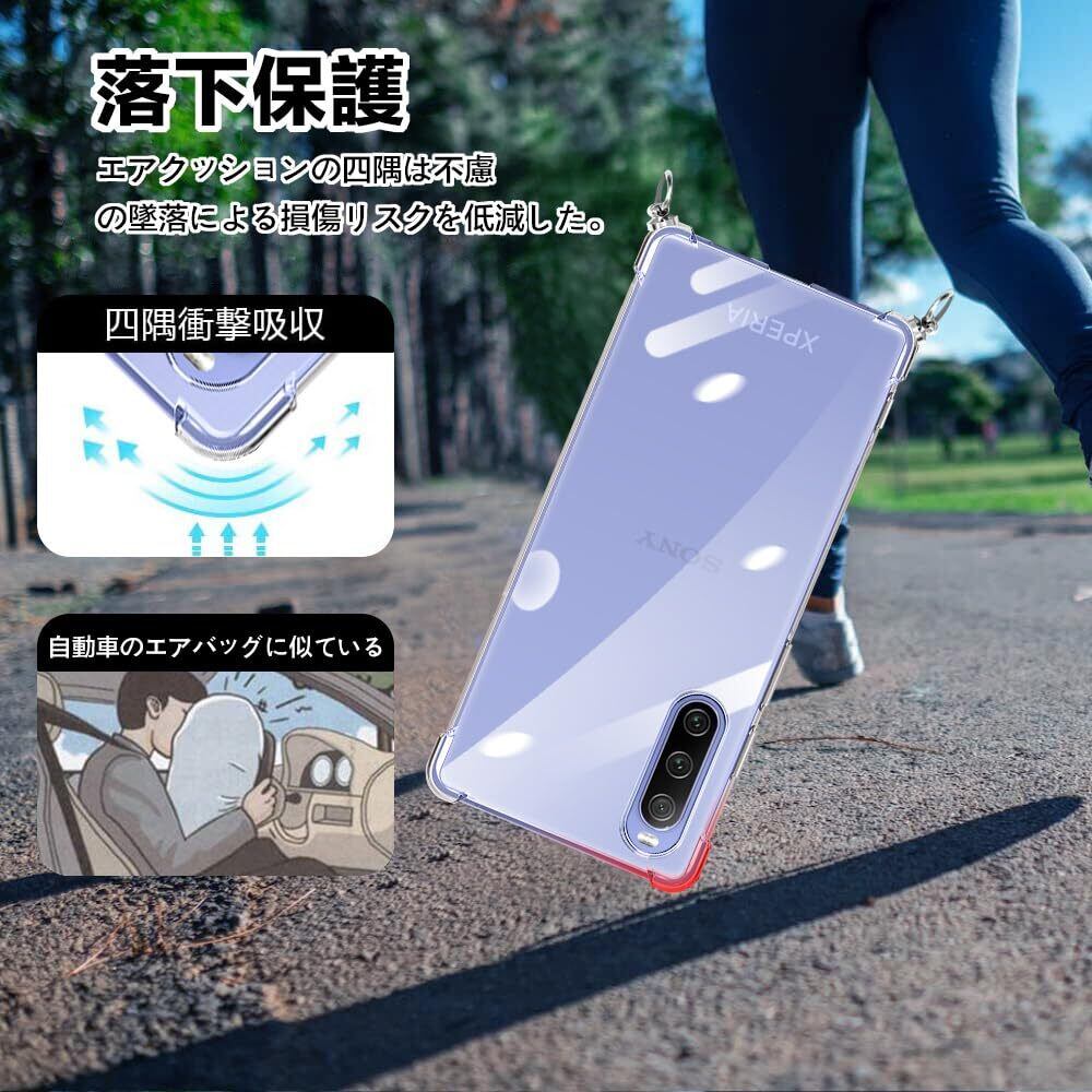 Sony Xperia 10 V ケース クリア ショルダー xperia10v スマホケース エクスペリア10V カバー 肩掛け 斜めかけ 縄掛けケース 透明 TPU 耐衝撃 薄型 軽量 ストラップ付き 携帯ケース 紐付き 斜めがけ 織りストラップ付き ネックストラップ ショルダー ケース 長さ調整可能 取り外し可能 落下防止 紛失防止 360°全面保護 多機能 (クリア)