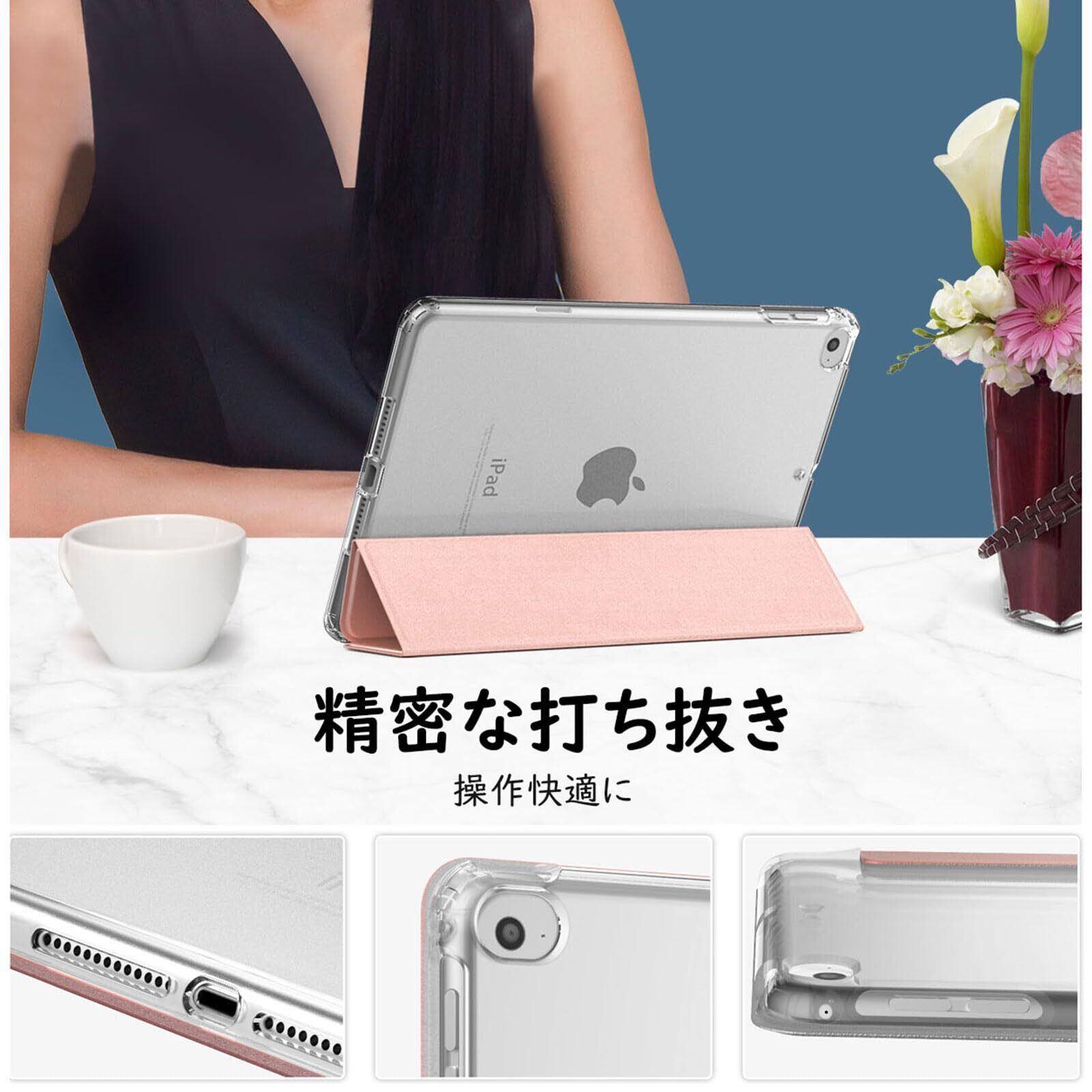 Dadanism iPad Mini5 ケース 2019モデル iPad Mini 第5世代 / 第4世代 通用 保護ケース スマートカバー 透明感 薄型 PU レザー キズ防止開閉式 三つ折薄型 TPU素材 スタンド機能 衝撃吸収 オートスリープ機能付き Rose Gold