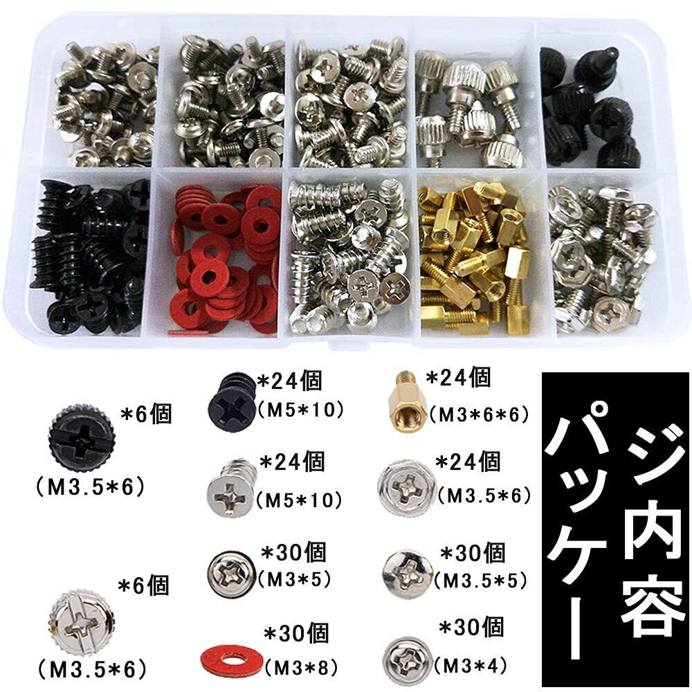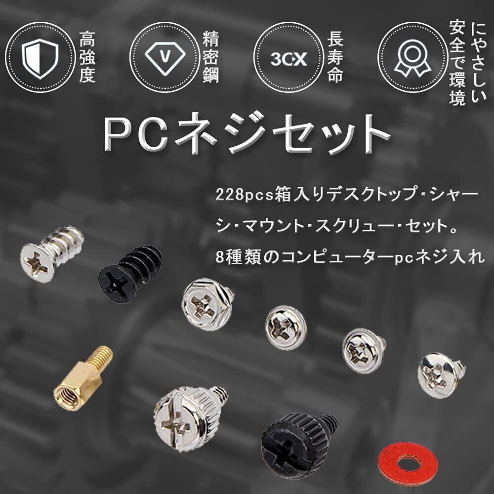 PCネジセット (228個セット) スペーサー ワッシャー 固定ネジ 防振 ワッシャー DIYマザーボード PCケース デスクトップ スクリューキット 収納ケース付き