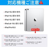 【対応機種】iPad 第9世代 10.2(2021年モデル:A2602、A2603、A2604、A2605)*iPad 第8世代 10.2(2020年モデル:A2270、A2428、A2429、A2430)*iPad 第7世代 10.2(2019年モデル:A2197、A2200、A2198) *iPad Air3 10.5(2019年モデル:A2152、A2123、A2153、A2154) *iPad Pro 10.5(2017年モデル:A1701、A1709、A1852)に対応しています。ご注文前にアイパッド裏面のモデルを確認ください。ご注意:本製品はiPadとApple pencilを含めません。