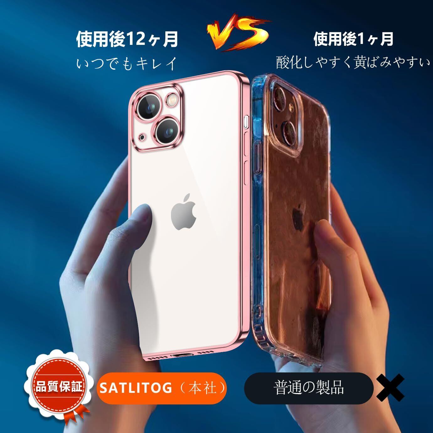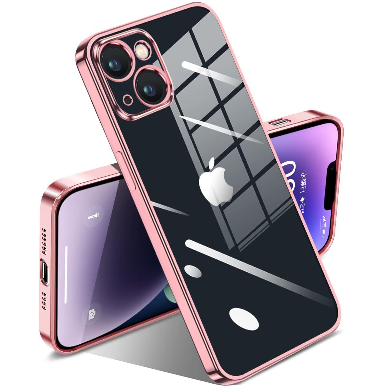 iPhone 14 用 ケース クリア 耐衝撃 アイフォン14 カバー 透明 メッキ加工 完全な保護 黄変防止 落下防止 ファッション 薄型 軽量 TPU 柔らかい ワイヤレス充電 人気 保護カバー (ローズゴールド)