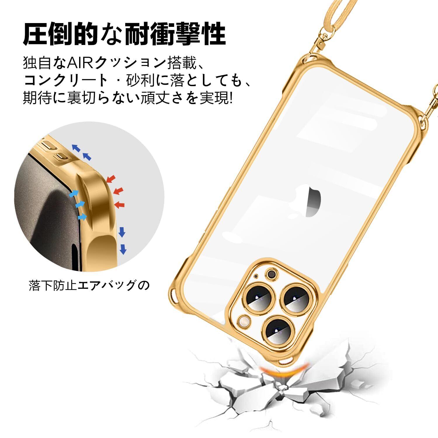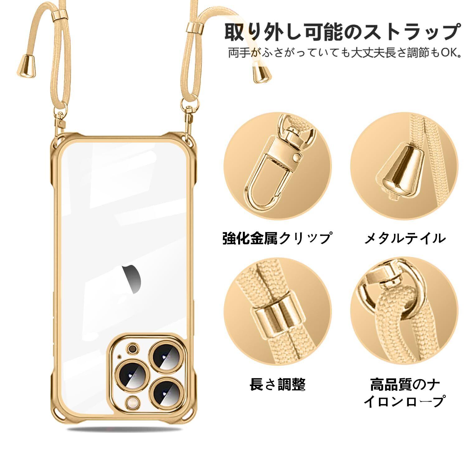 NISIILNG iPhone 15 Pro 用 ケース クリア ショルダー iPhone15pro スマホケース アイフォン15Pro カバー 肩掛け 斜めかけ 縄掛けケース 透明 薄型 軽量 耐衝撃 TPU ストラップ付き 紐付き 斜めがけ 織りストラップ付き ネックストラップ ショルダー 縦/横 2WAY 長さ調整可能 取り外し可能 落下防止 紛失防止 (ゴールド)