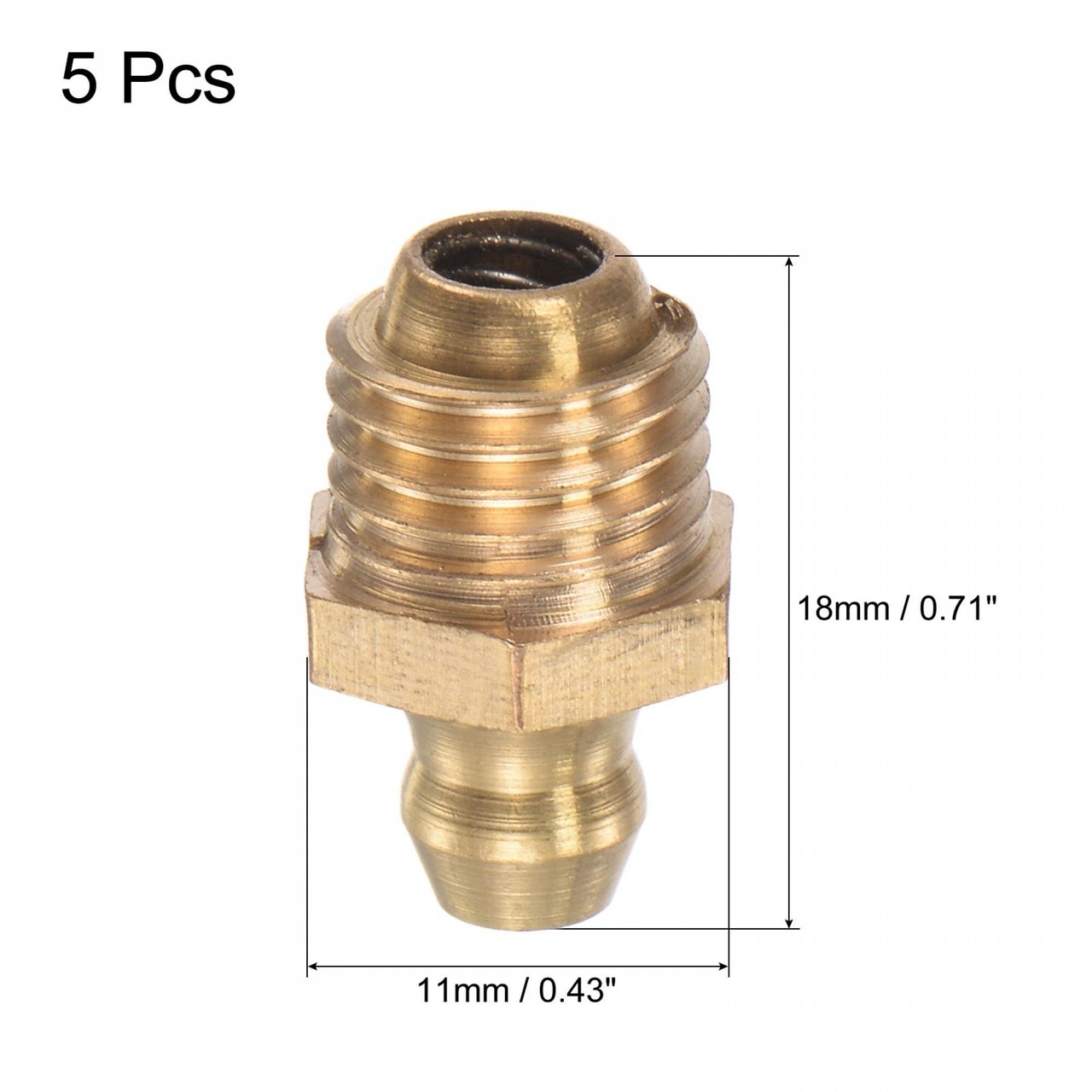 uxcell 5個 グリスニップル M10×1.25 ニップル 11×18mm 真鍮 ストレート グリスフィッティング 油圧 車 バイク メンテナンス