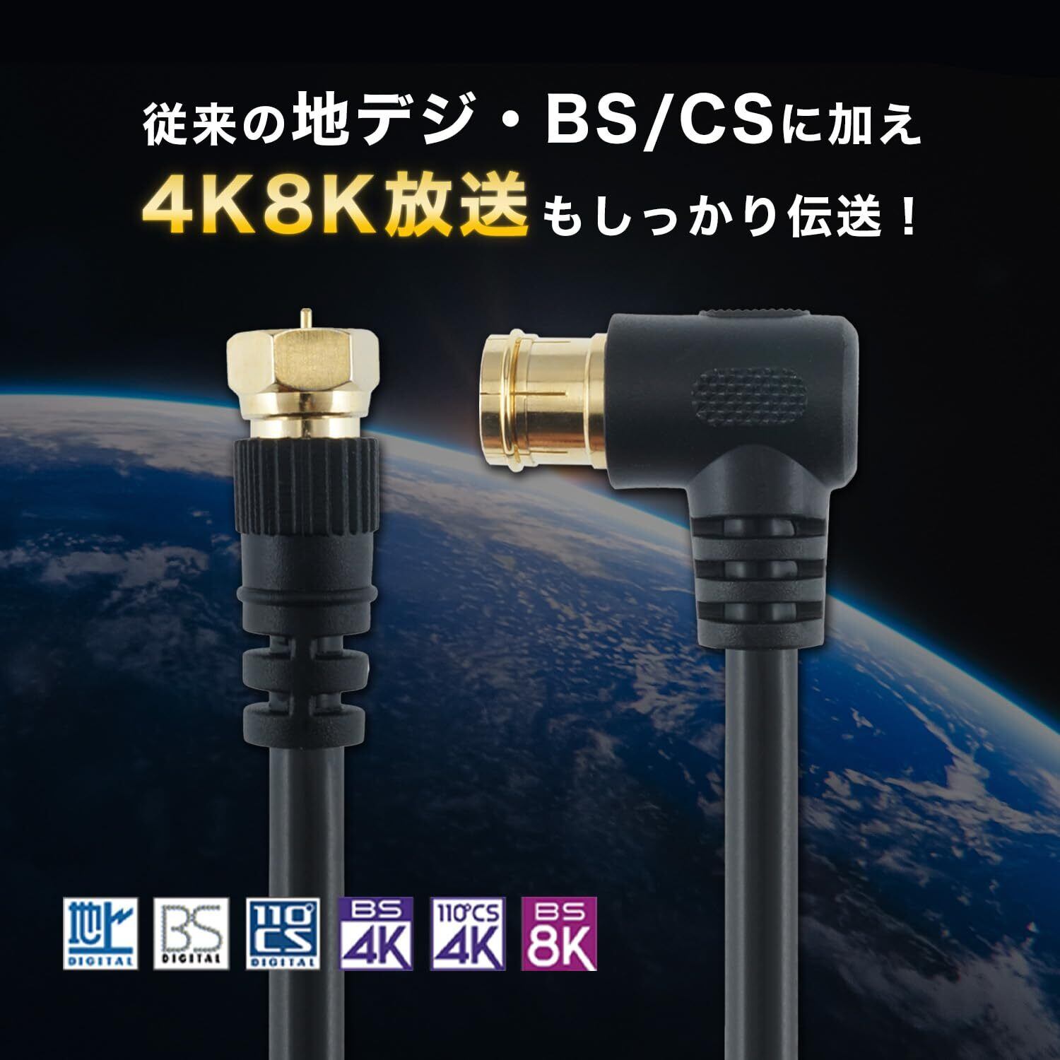 [4K8K衛星放送対応] [2重シールドで信号干渉を低減] [金メッキコネクタで耐久性向上]