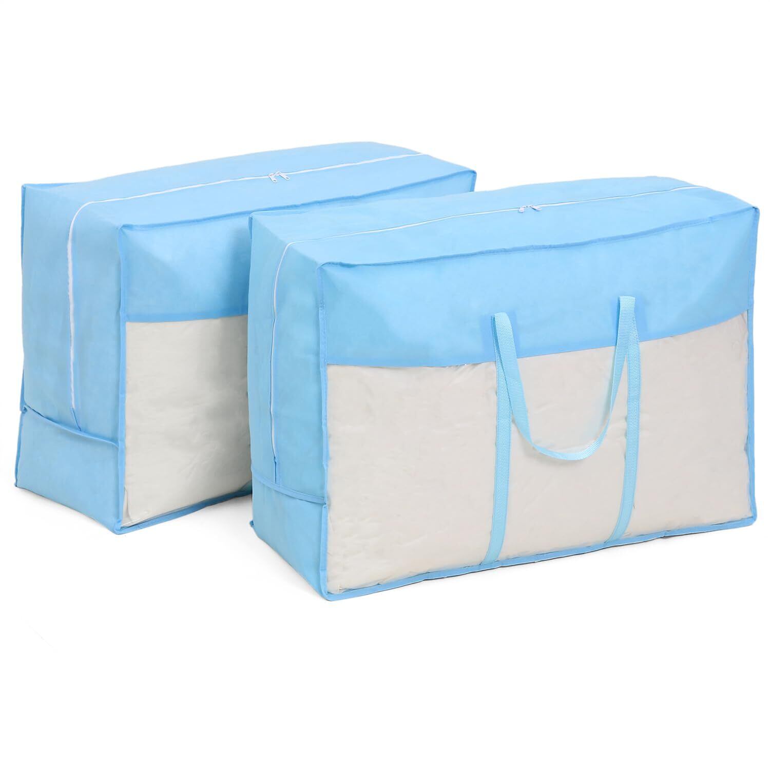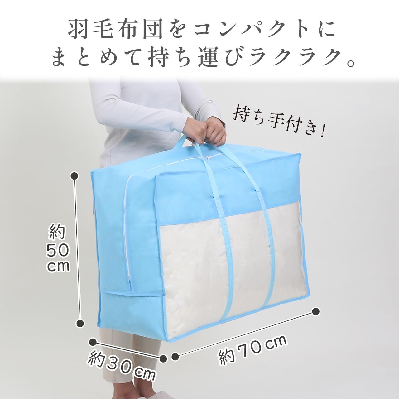 アストロ 羽毛布団 持ち手付き収納袋 2枚組 軽量 持ち運びに便利 コンパクトに収納できる収納ケース 羽毛をつぶさず優しく軽圧縮保管 通気性の良い不織布製でほこりや汚れをガード シングルサイズ1~2枚収納可能 圧縮袋 布団ケース ふとん収納袋 収納ケース 移動 コインランドリー クリーニング 引っ越し 敷 掛 布団 ふとん 収納 圧縮袋 薄型 湿気 除湿 水色 102-13