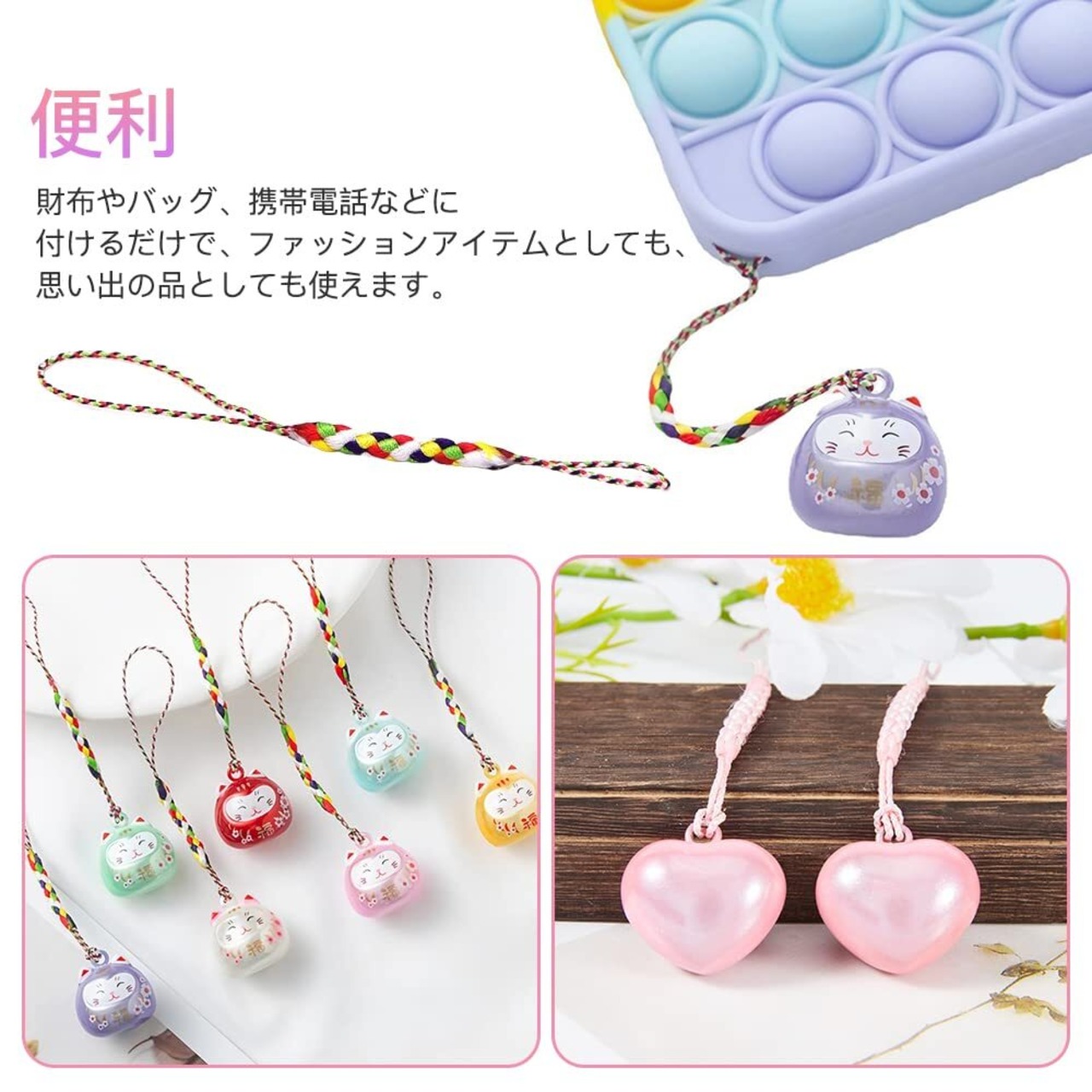 便利:財布やバッグ、携帯電話などに付けるだけで、ファッションアイテムとしても、思い出の品としても使えます。