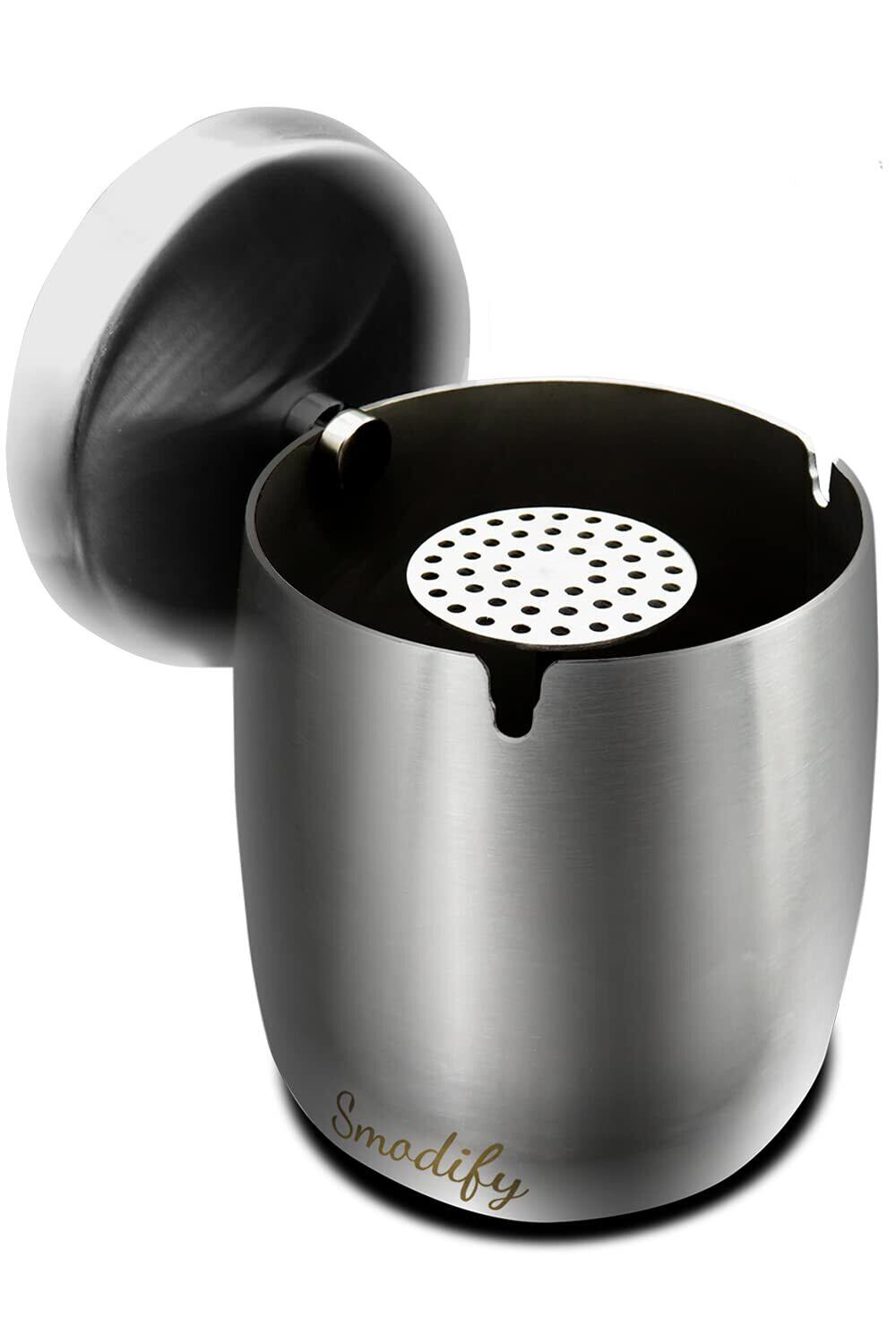 Smodify 灰皿 ふた付き 屋外 卓上 大サイズ 大容量 ステンレス はいざら (大, シルバー)