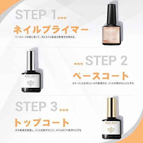 Modelones ジェルネイル トップコート ベースコート プライマー 拭き取り不要 ノンワイプ UV/LED対応 低臭 長持ち 透明感 3本セット 初心者 10ml*3セット
