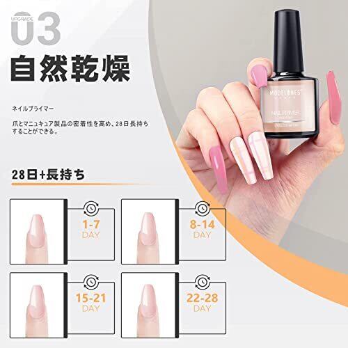 21日以上の長持ち:Modelonesのベースとトップコートジェルは正しく使うと21日以上ジェルネイルを長持ちさせることができます。 ベースコートは薄く均一に塗って、ツヤが長持ちし、傷がつきにくいことができます。 ナチュラルネイル、UVジェルネイル、アクリルネイル、ネイルチップなどにも適用します