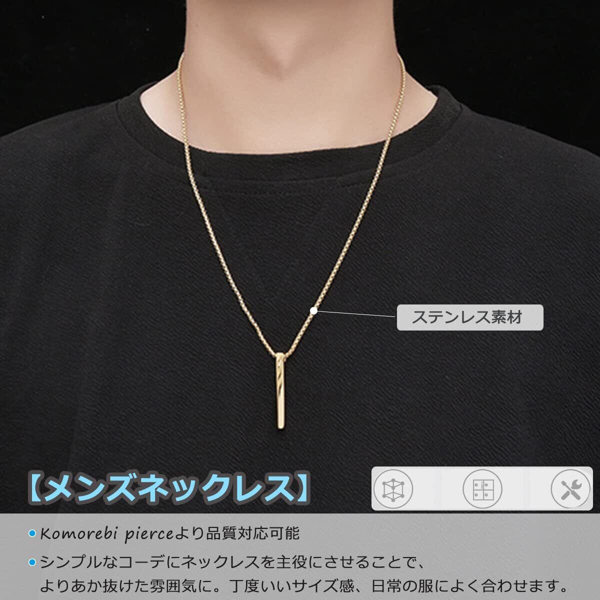 【シンプルなデザイン】シンプルなデザインで男性に人気のネックレスです。飽きのこないデザインで、さりげないおしゃれを演出。カジュアルなコーディネートからややパターンのスタイルまで幅広く対応するアクセサリーです。