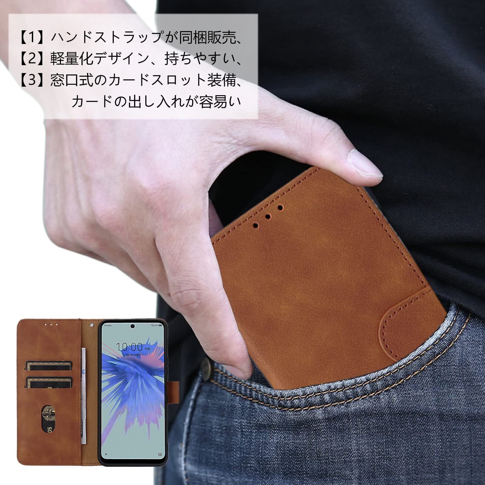【ポイント①】:表面には他の合成レザーより肌触りがもっとやさしい高品質PU素材を採用し、汚れにくくて、耐熱性と柔軟性が一層アップされ、持ち心地に非常に良いフィット感を与えます。内部の柔軟なTPUホルダーは衝撃吸収の性能が抜群で、万が一の落下発生の時、大切なスマホ本体をしっかり守ることができます。