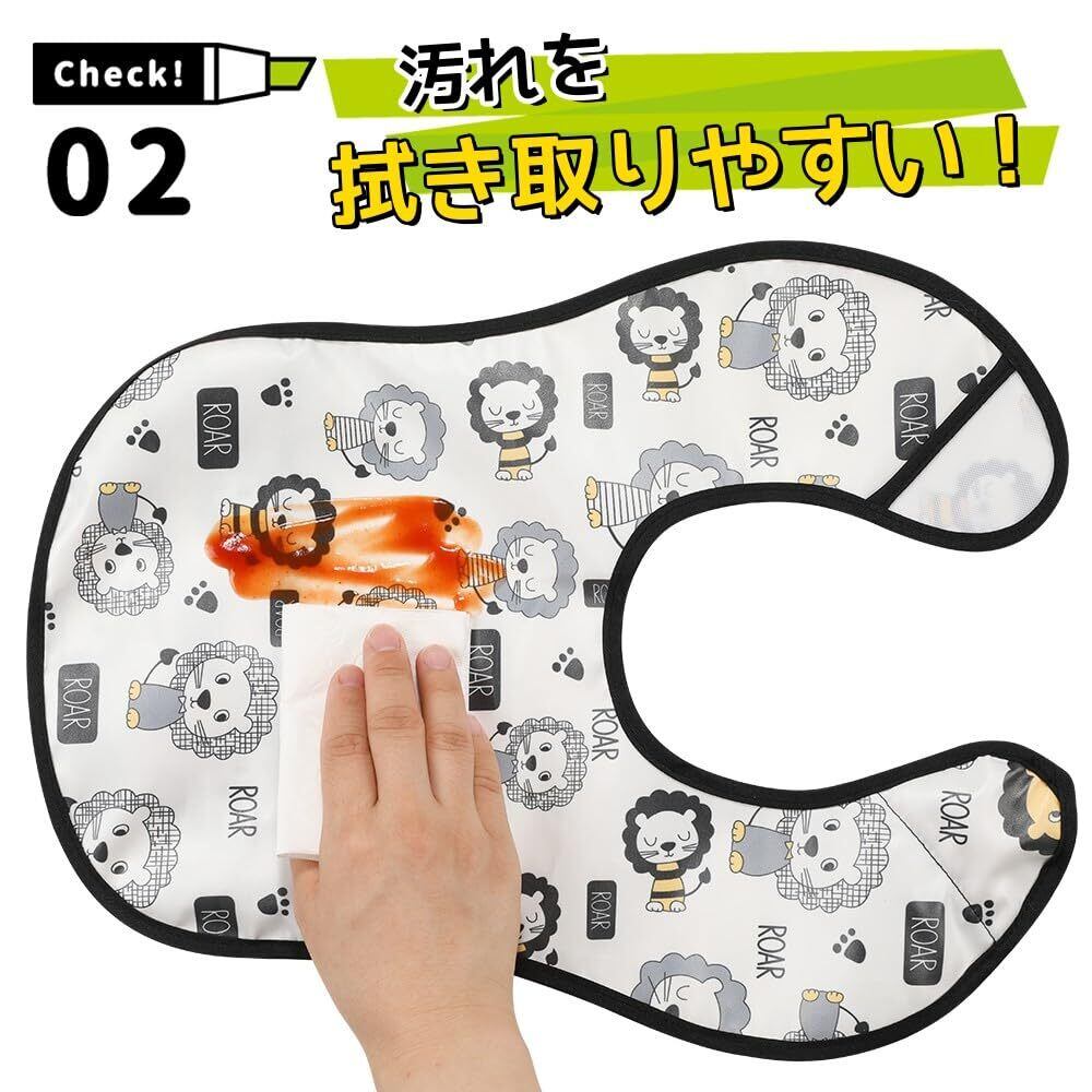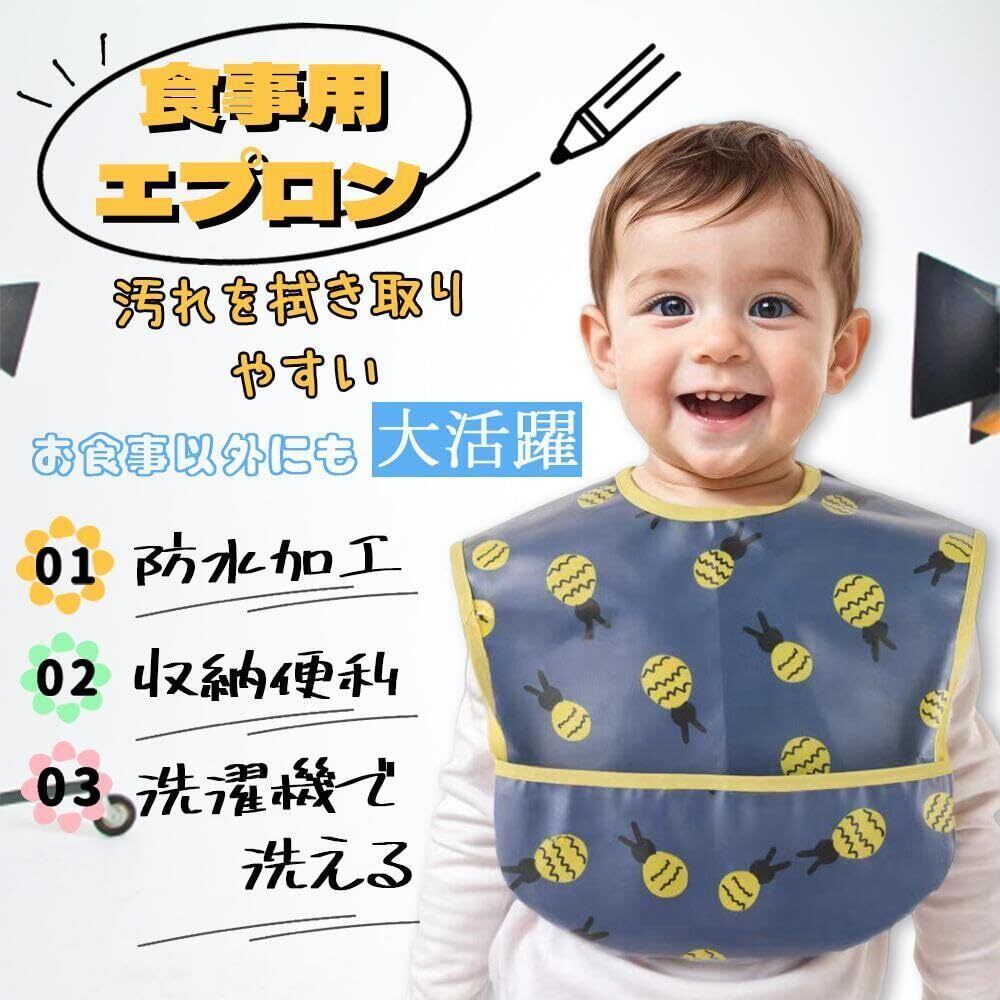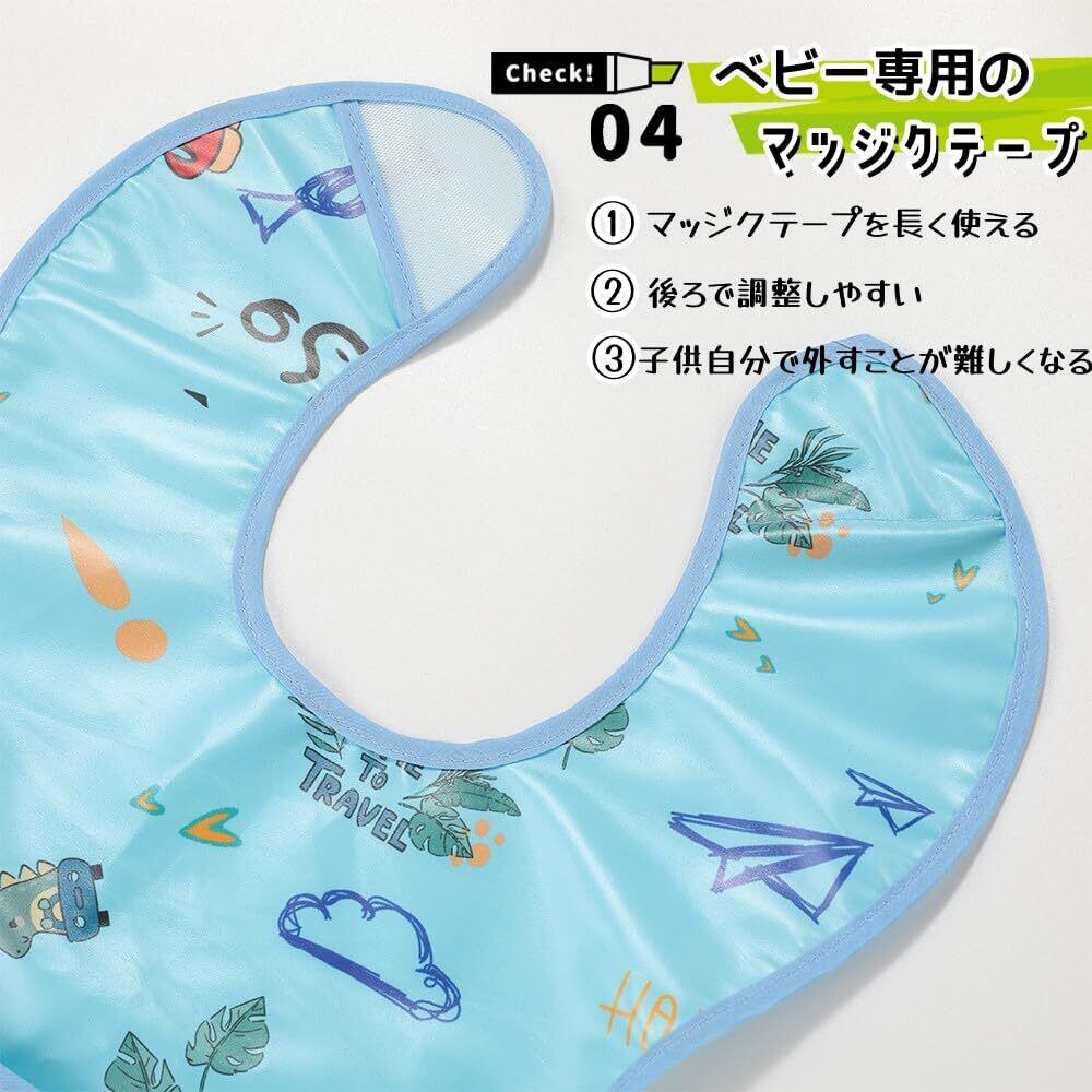 成長に合わせる食事用スタイ:後ろに子供専用の長いマジックテープをついてでサイズ調整ができる。子供自分でも簡単に撮れないです。対応年齢:0~4歳