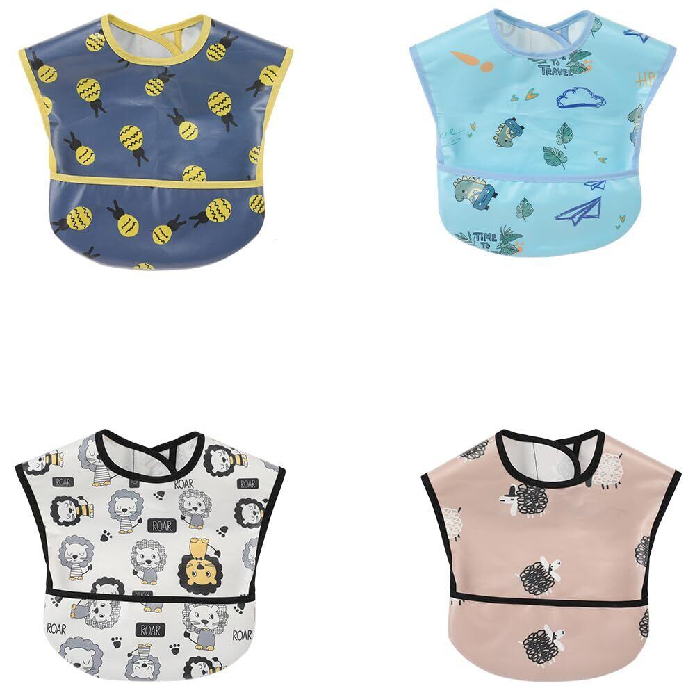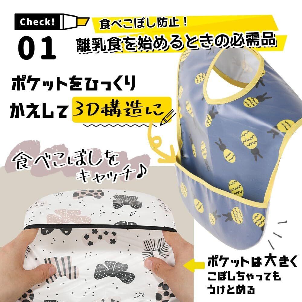 [スリーマッシュルーム] お食事用エプロン ベビー 離乳食 エプロン 3D 立体 保育園エプロン - 防水よだれかけ 赤ちゃん 10枚セット 速乾 洗濯機で洗える 名前を書ける 【保育士推奨】 保育園用 男の子 女の子