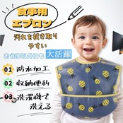 防水食事用エプロン:表側:ポリエステル100%はっ水加工生地 裏地:ラミーネット防水加工【中国製、日本企画】【対象年齢】~4歳【一枚一枚検品済み】※30日商品が到着後30日以内に返品・交換ができる。