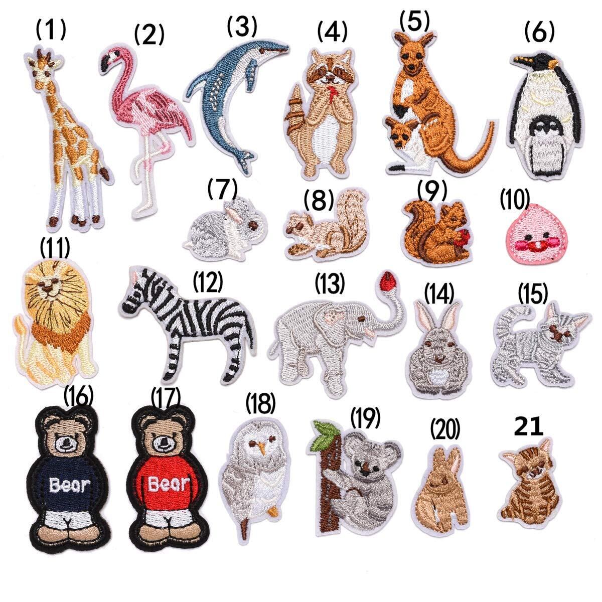 【Wdlife】動物ワッペン アイロン刺繍ワッペン しまうま うさぎ 猫 象カンガルーペンギン 様々な動物 キリンぞうさんタンチョウパンダフクロウ猫犬イルカワッペンアップリケ DIY服 小さいサイズ可愛い装飾【21枚セット】