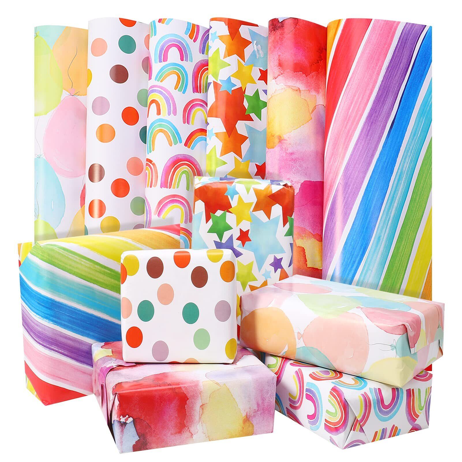 【プレゼントに】素敵な柄の6枚入りラッピングペーパーセットです。ほとんどのサイズの誕生日包装と出産プレゼントに対応できます。郵送できるように包装紙を折りたたんでから包装します。あらかじめご了承の上ご購入ください