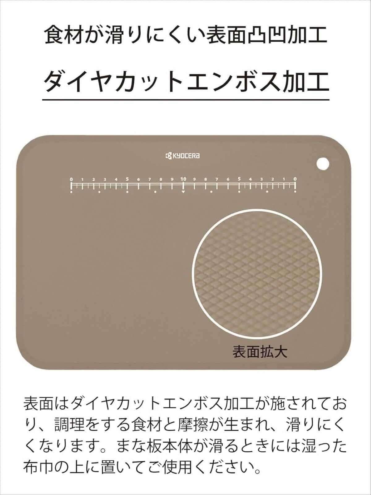 【すべりにくい加工】表面にはダイヤカットエンボス加工が施されていて、食材がすべりにくい