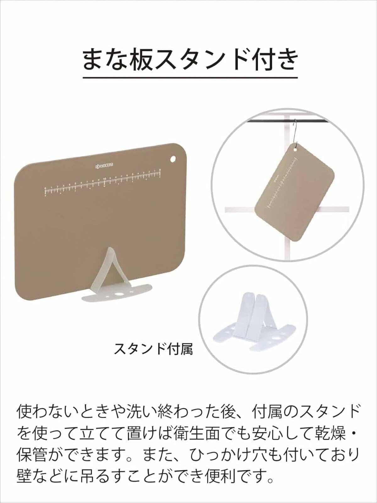 京セラ(Kyocera) まな板 抗菌 柔らかい 軽量 目盛り スタンド 付き シートまな板 カッティングボード 漂白 除菌 OK ラテベージュ 日本製 CC-99 LBG