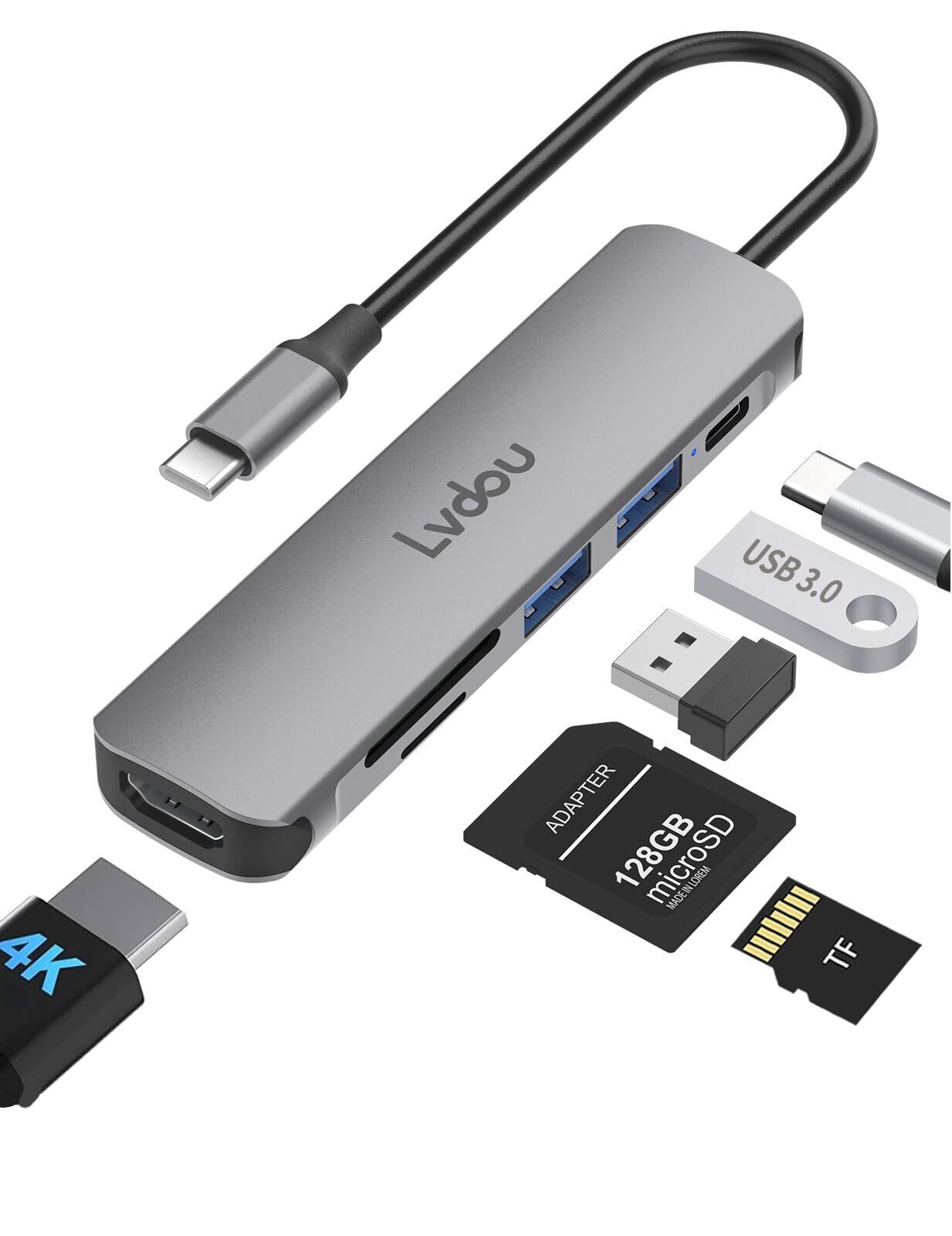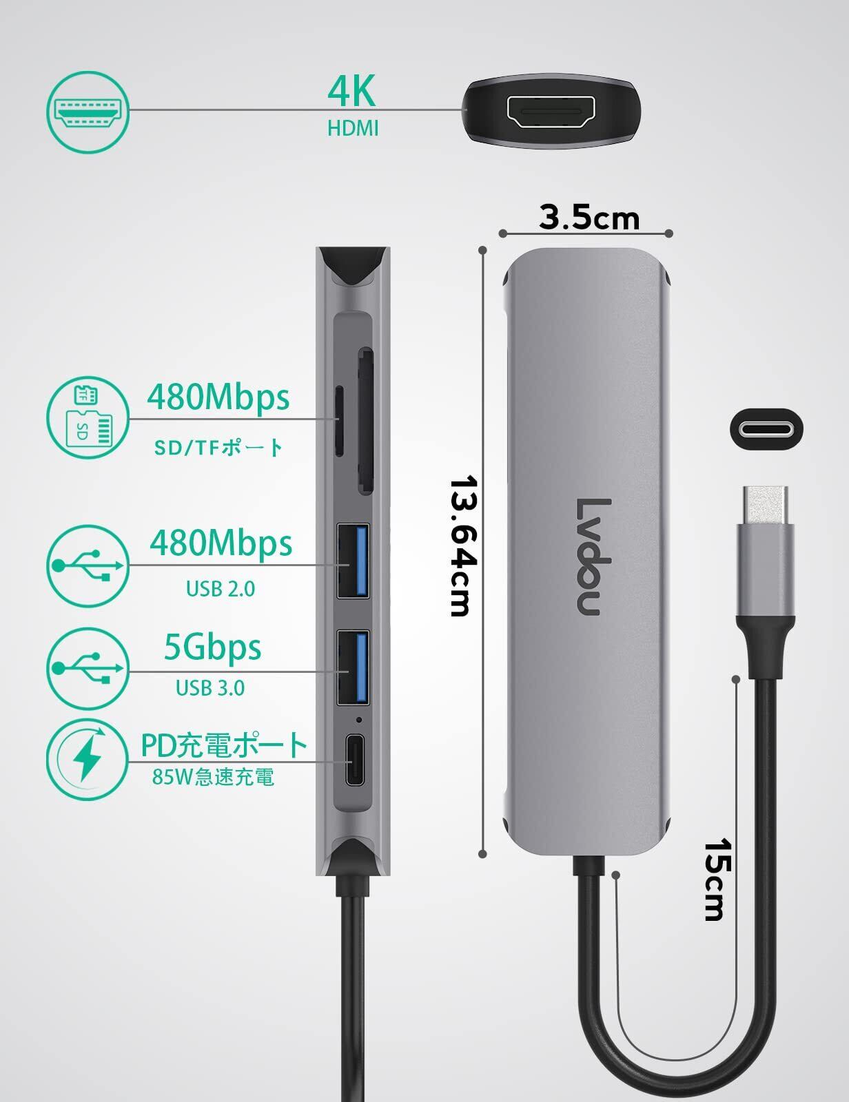 2025高機能版 USB C ハブ 6-in-1 Lvdou アダプタ|100W PD充電対応・4K 60Hz HDMI・MicroSD/SDカードリーダー搭載|MacBook Pro/Air, iPad Pro, iPhone 15/16, Surface Pro, Switch2/Switch, Galaxy Book, Chromebook対応 ノートPC/タブレット用