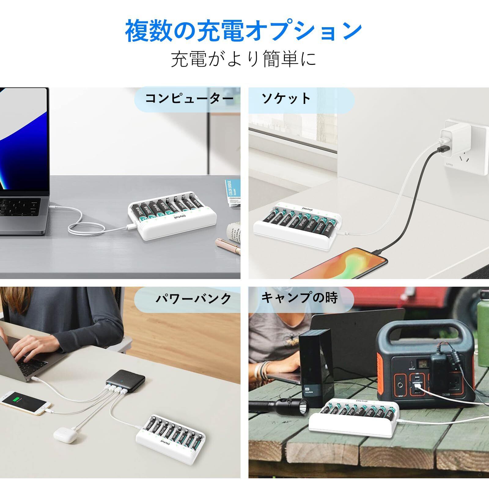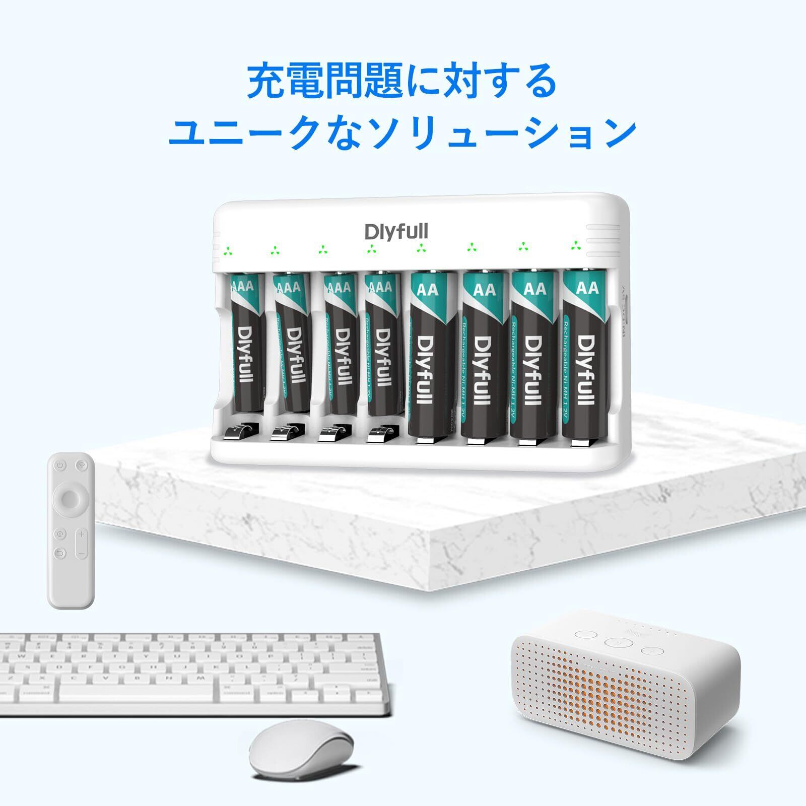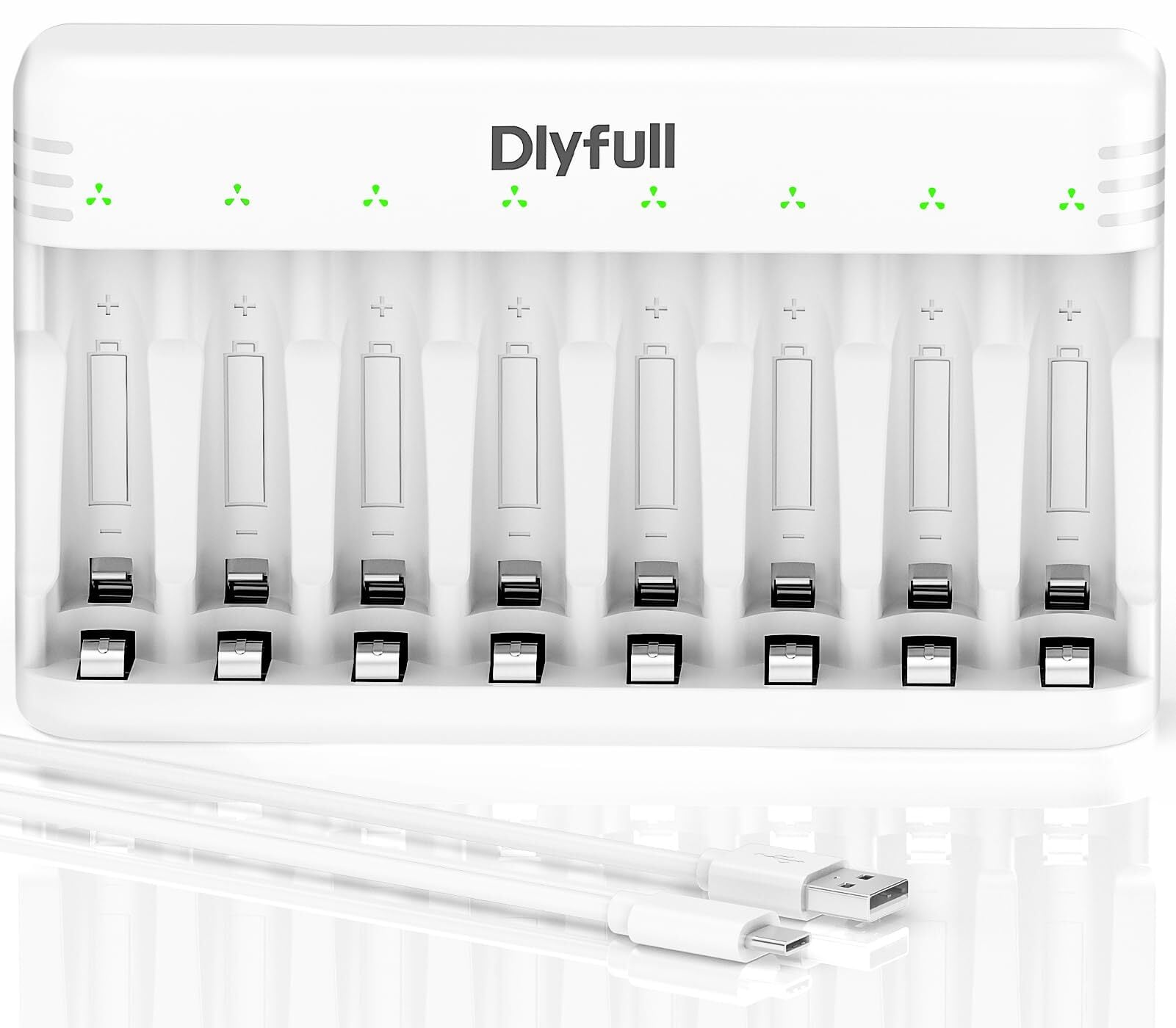 Dlyfull 電池充電器 単4 単3 充電池 充電器、USB Type-C入力 8スロット単三 単4 充電器/充電式ニッケル水素電池 充電器/ニカド充電池に対応 同時充電 LEDライト 単3 バッテリー 充電器 エネループ 充電器 単3 充電池充電器 (白色)
