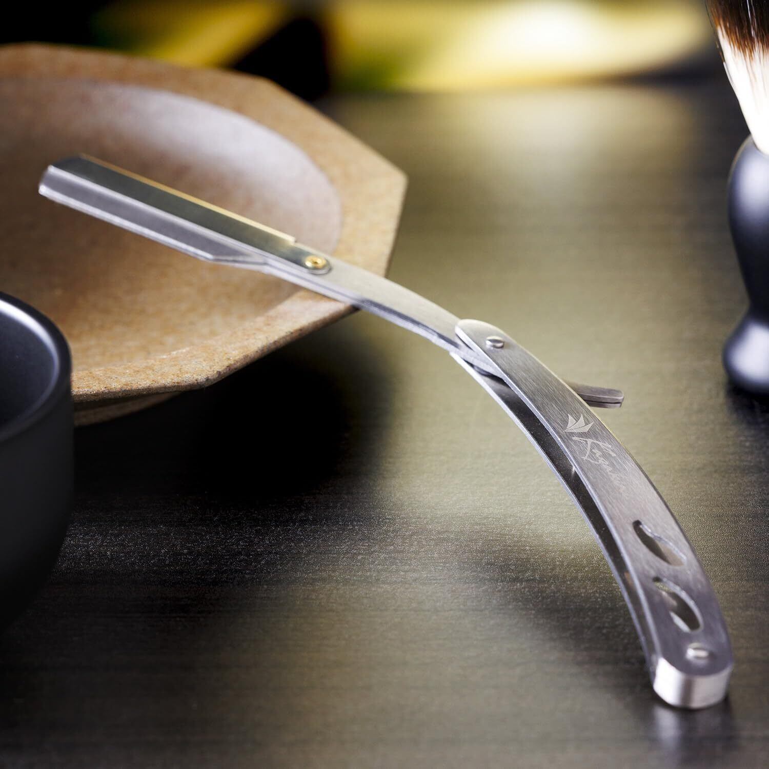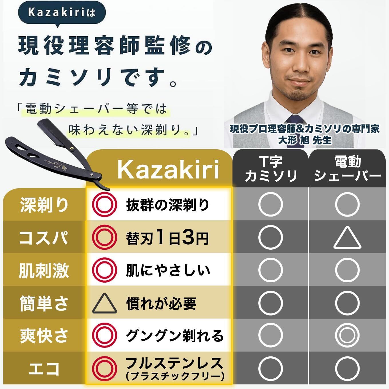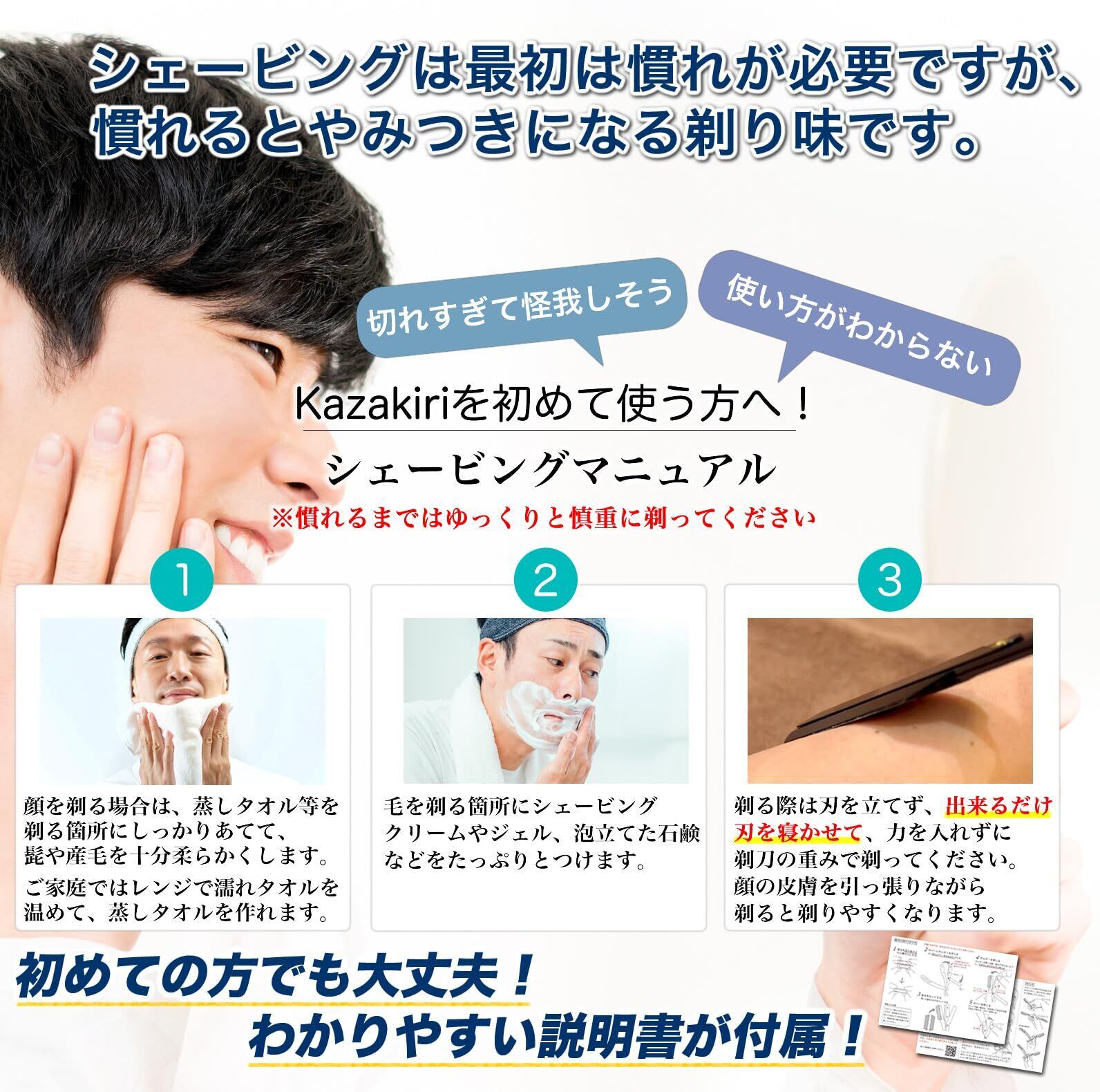 Kazakiri カミソリ 剃刀 【プロ理容師監修x感動深剃り】 髭剃り 顔剃り 替刃40刃(20枚)付き メンズ 西洋剃刀 一枚刃 説明書付き シェービング シルバー カザキリ