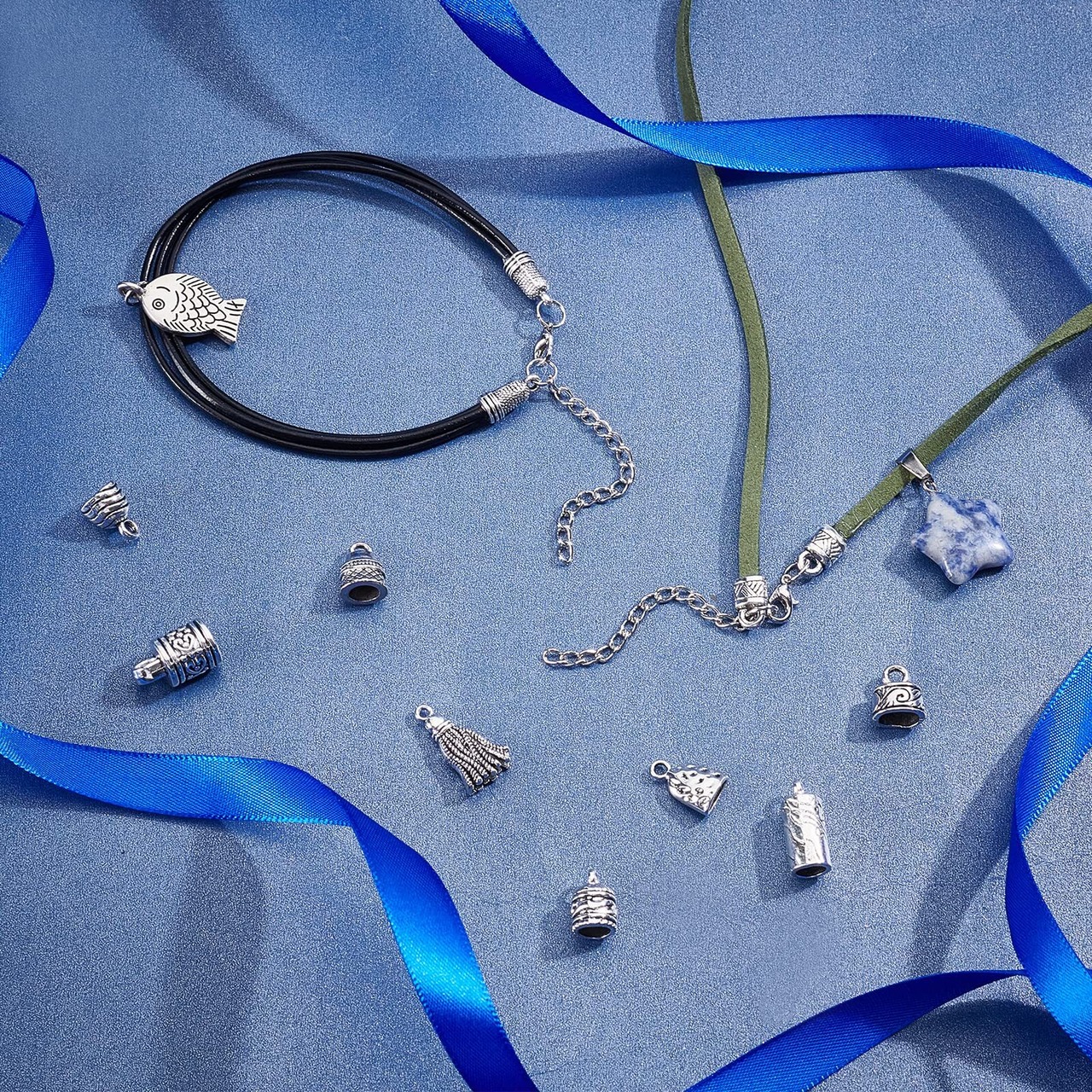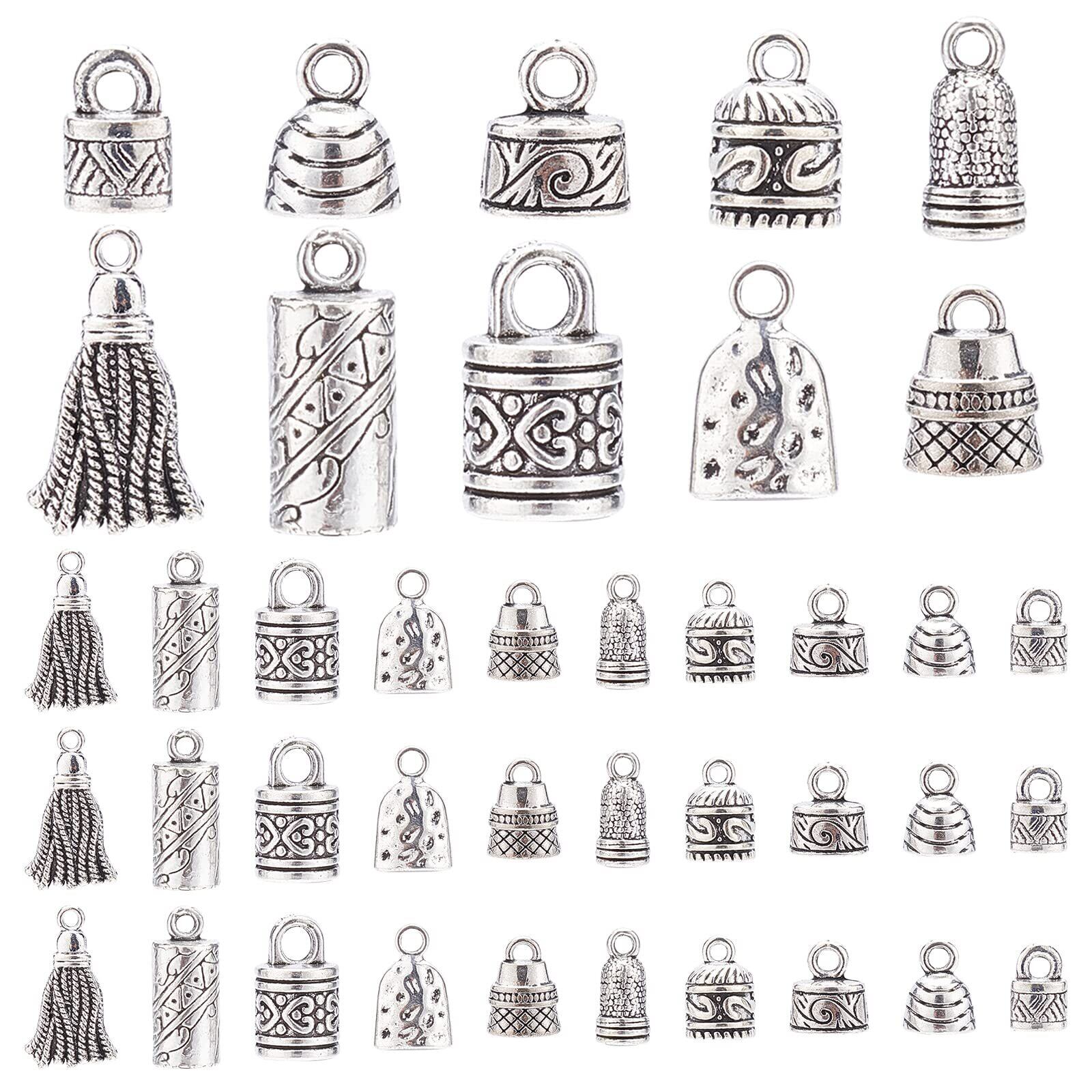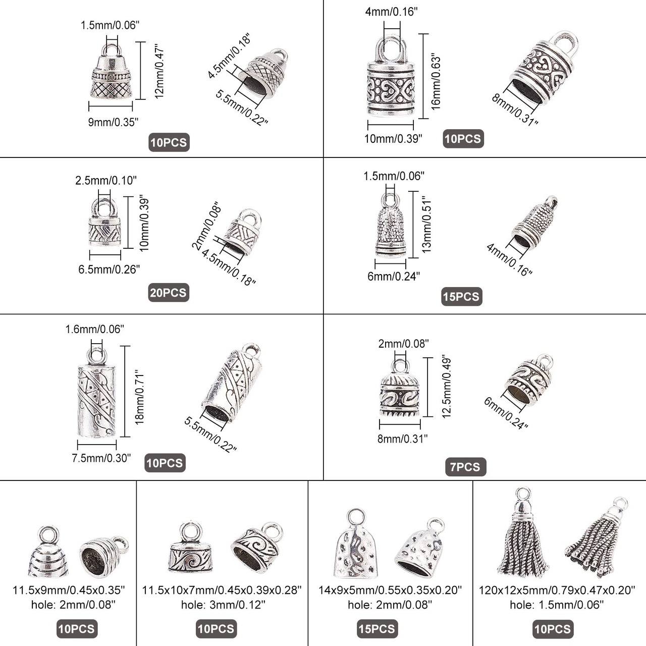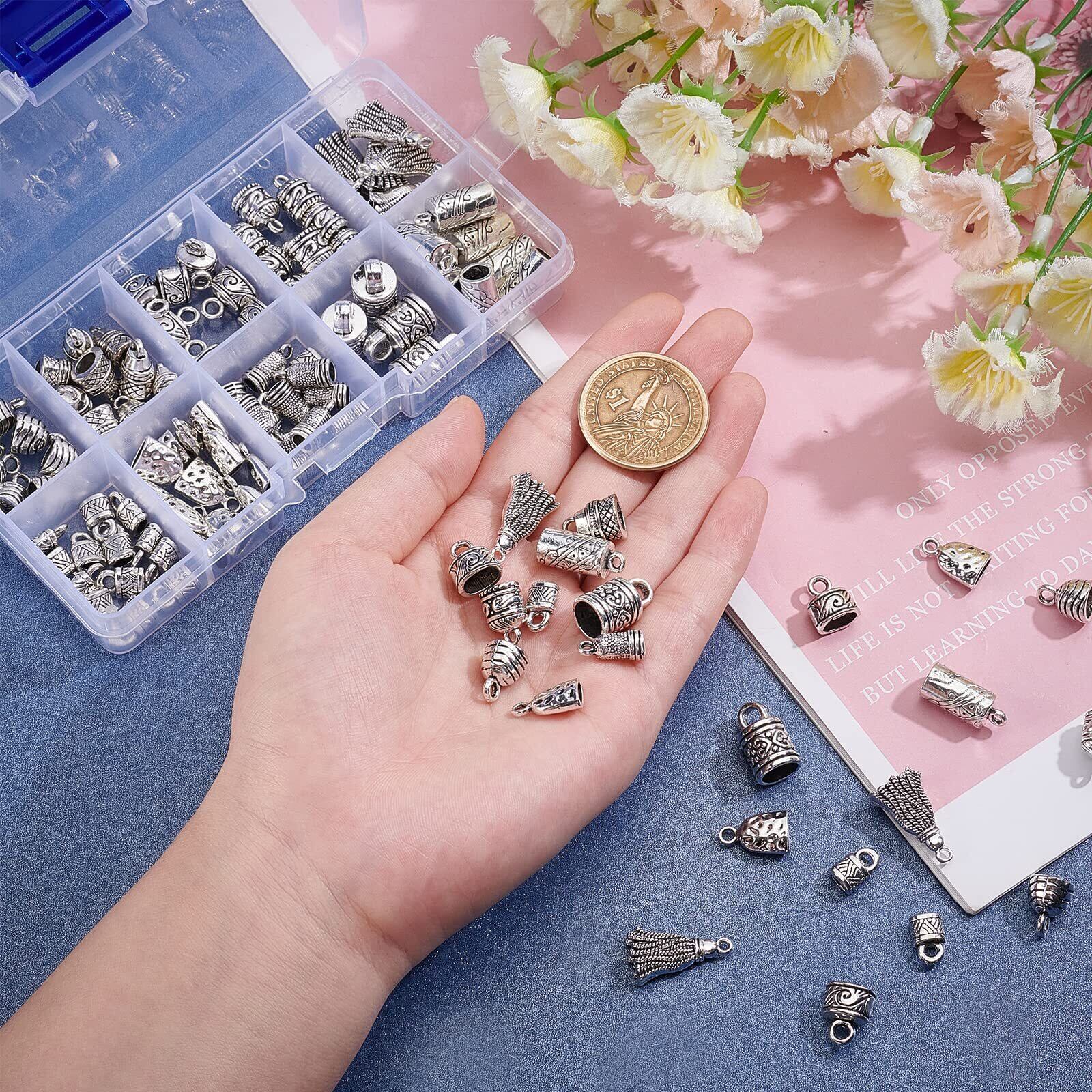 PH PandaHall エンドパーツ チベット風 タッセルキャップ 117個 10種類 ブレスレット ネックレス 留め具 アクセサリーパーツ コードエンド 丸カン ジュエリー用 糸端 DIY ハンドメイド 手芸用品 手作り素材 クラフト用品 4~8mm