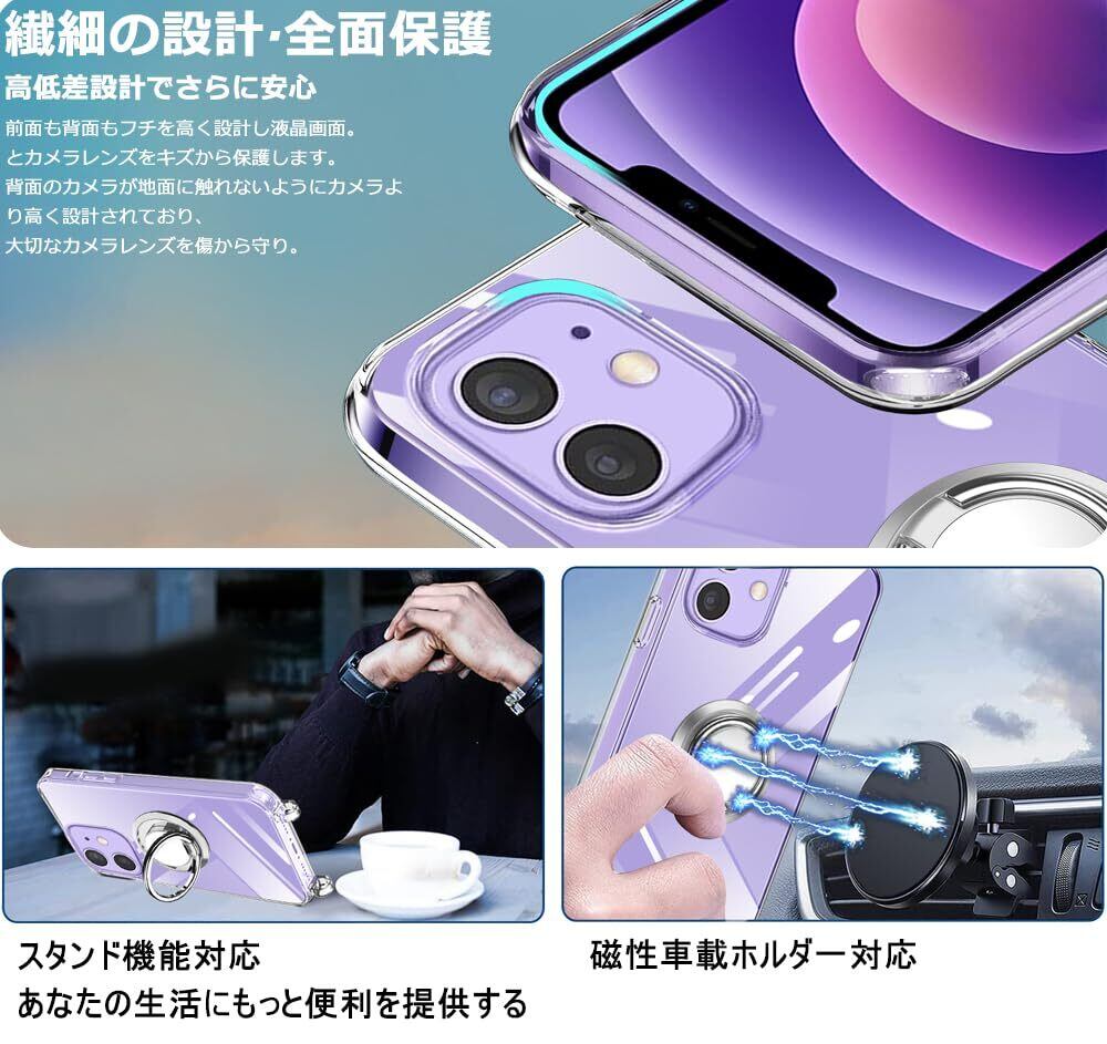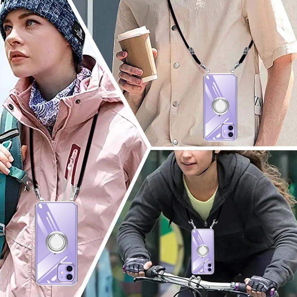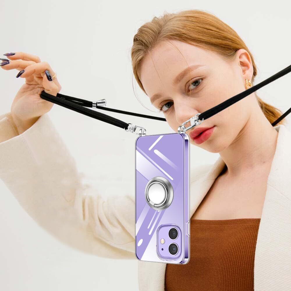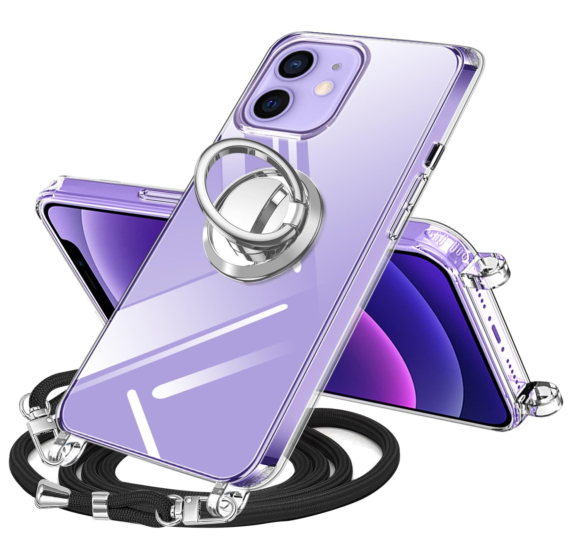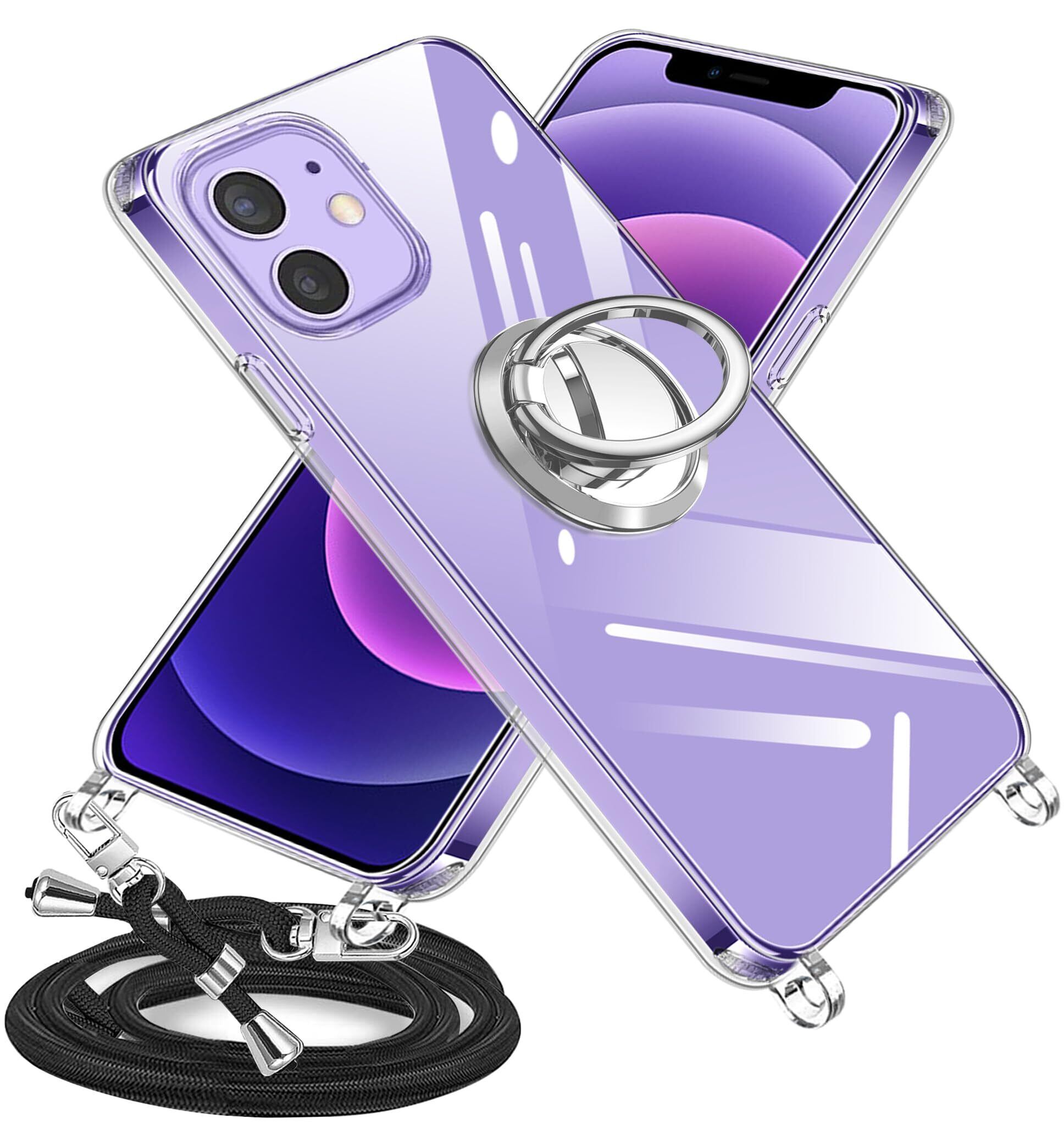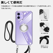 iPhone 12 mini / 13 mini 用 ケース クリア ショルダー リング付き iphone12mini / 13mini 用 スマホケース スタンド アイフォン12ミニ / 13ミニ カバー 肩掛け 斜めかけ 縄掛けケース 透明 PC+TPU 薄型 軽量 耐衝撃 長さ調整可能 取り外し可能 ネックストラップ ショルダー ケース 落下防止 (クリア)