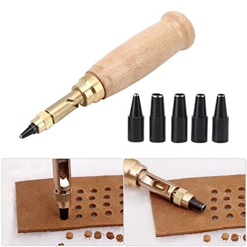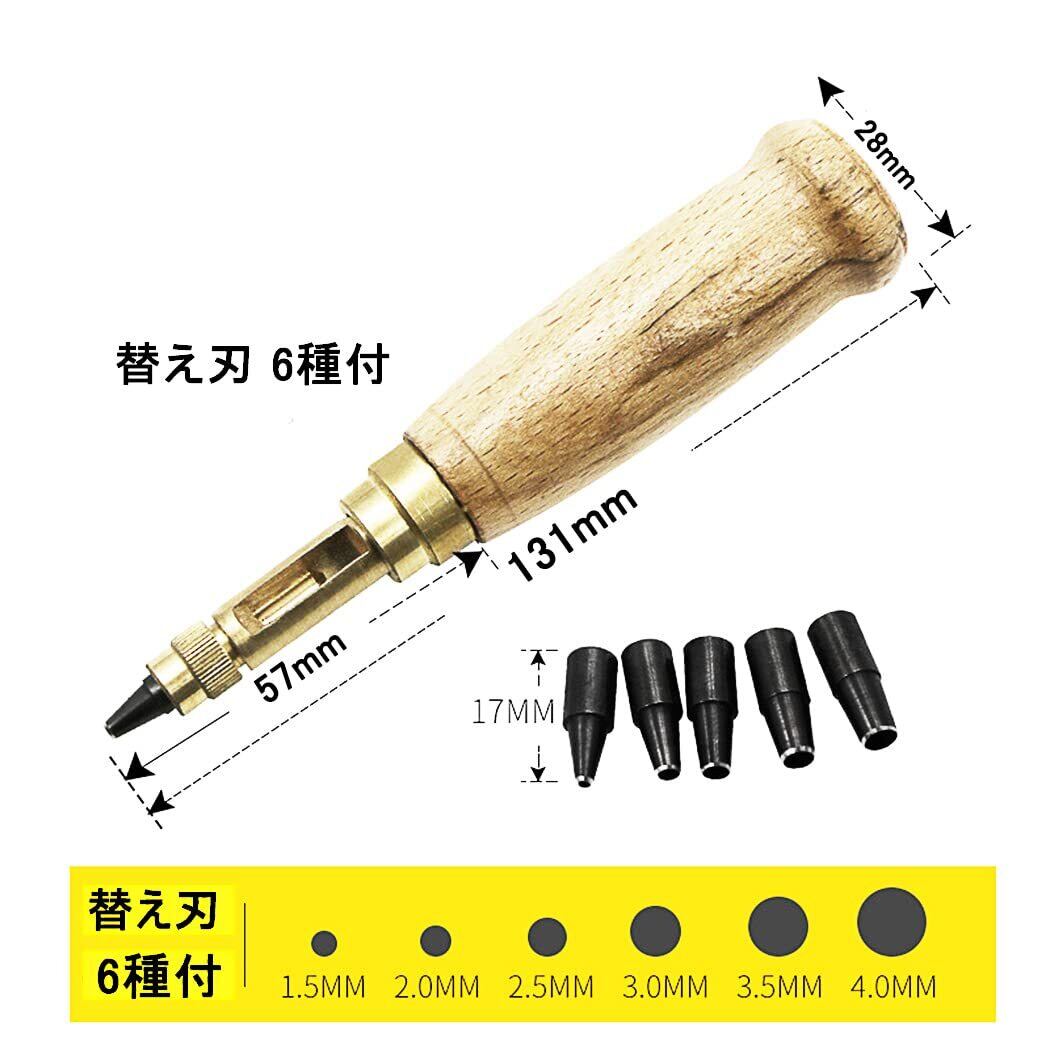 スクリューポンチ レザーパンチ 穴あけ工具 ハンマー 不要 打音気にせず 穴あけ レザークラフト スクリュー ポンチ 6サイズ セット