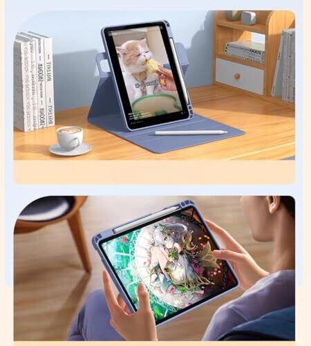 【縦置き&磁気吸着分離式ケース 】360度回転設計で向きを変えることで便利なスタンドになります。縦向きでも横向きでも用途によりお使いいただけます。家での動画鑑賞や電子書籍を見ることなど快適に楽しめます。