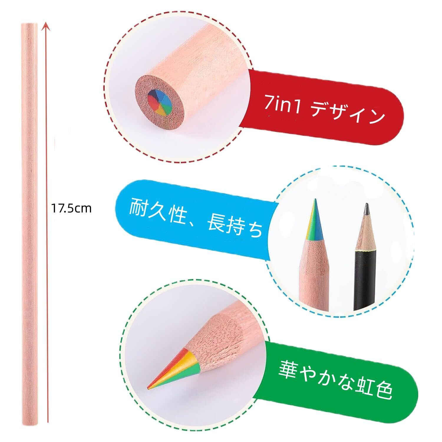 セット内容:人気な7 in 1デザインレインボー色鉛筆 12本セットです。
