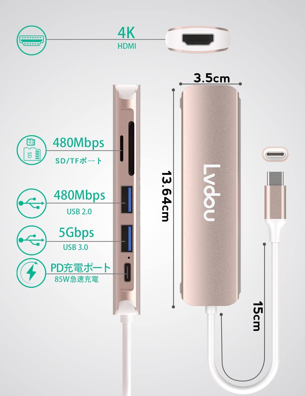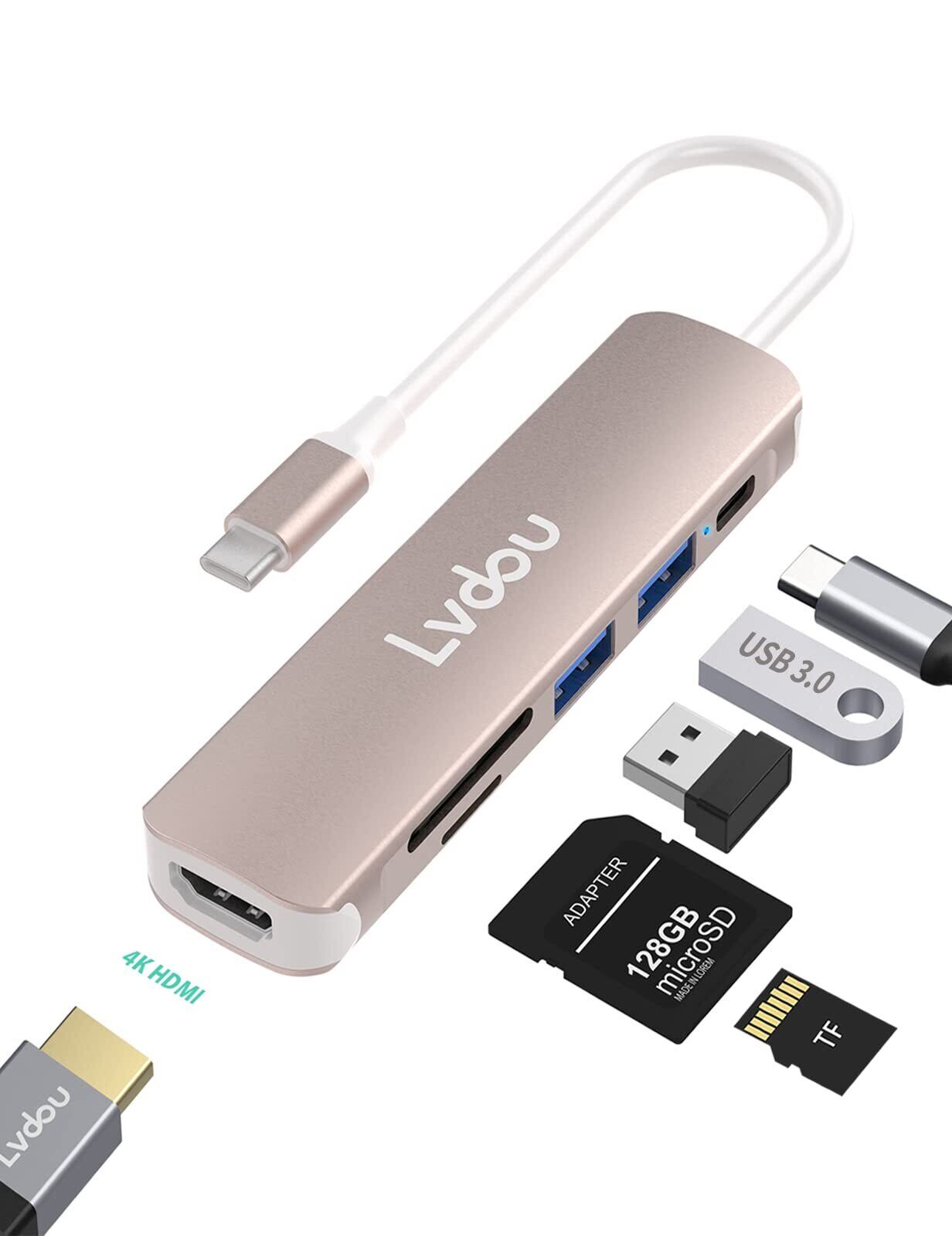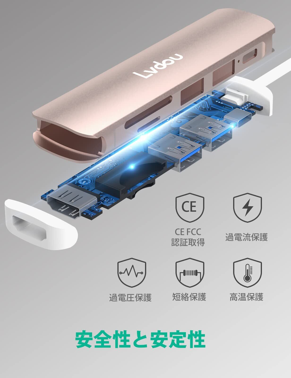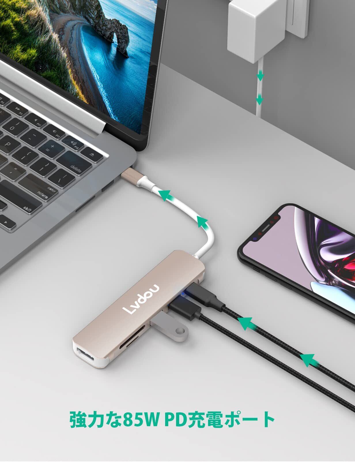 Lvdou 2024高機能版 USB C ハブ 6-in-1 Type-C アダプタ|100W PD充電・4K 60HZ HDMI・USB 2.0/3.0・MicroSD/SDカードリーダー搭載|MacBook Pro/Air, iPhone 15/16, iPad Pro, Surface Pro 9/8, HP, DELL, Chromebook対応 ノートPC/タブレット用|適格請求書発行可