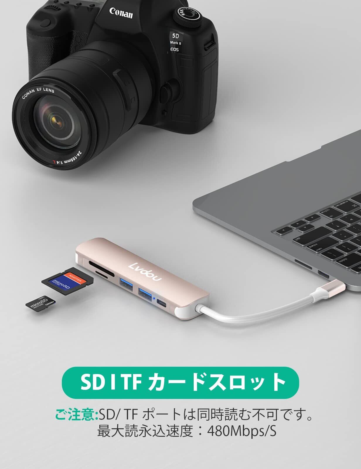 『SDカード、USB3.0対応』:USB3.0/2.0ポートが付属しますので、最大5Gbpsの伝送速度をサポートし、データとHD動画を数秒で転送できます。 SD カードとTF カードのスロットを搭載し、最大読込み速度は480mbpsです、動画やデータのスムーズな伝送が可能です、ほとんどのSDカードに対応しています。 ご注意:SD/ TF ポートは同時読む不可です。