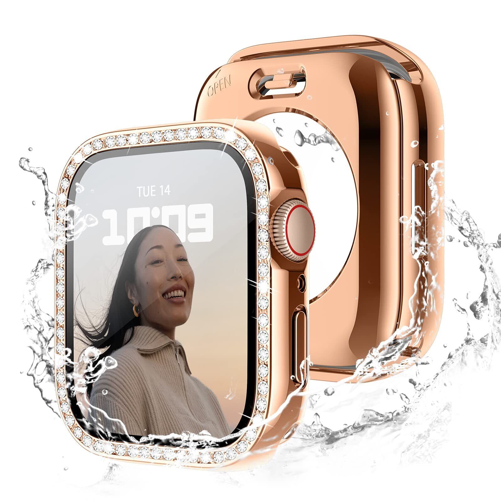 Recoppa コンパチブル Apple Watch ケース 40mm キラキラ アップルウォッチカバー 防水ケース Series 6 5 4 SEに対応 ガラスフィルム付き 一体型 IP68防水仕様 ダイヤモンド 光沢感 オシャレ レディース ローズゴールド 40mm