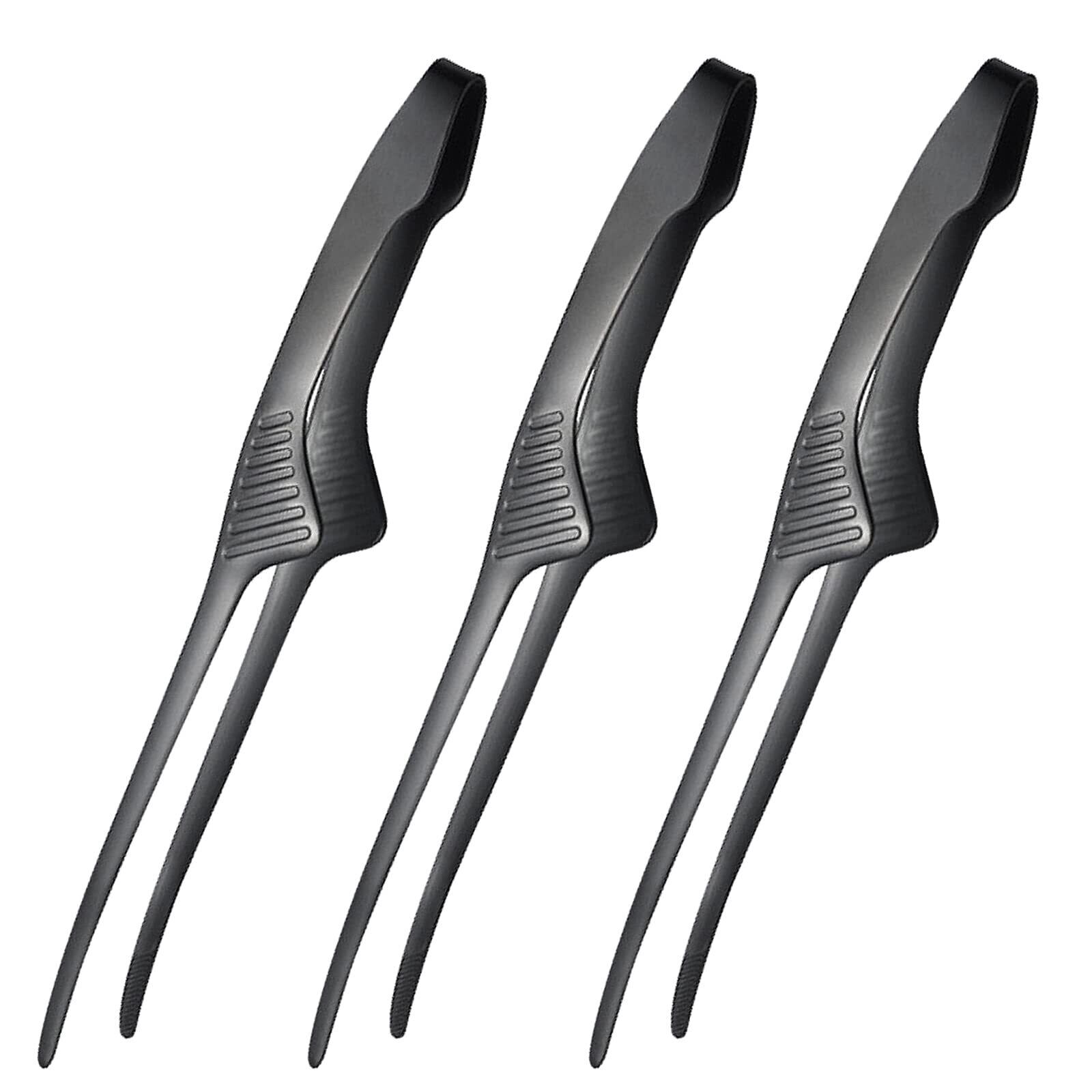 ziyue トング 焼肉 ステンレス 自立式 キャンプ バーベキュー 菜箸 すべりにくい 取り分け パスタ 焼肉トング (先端, 3本セット-Black)