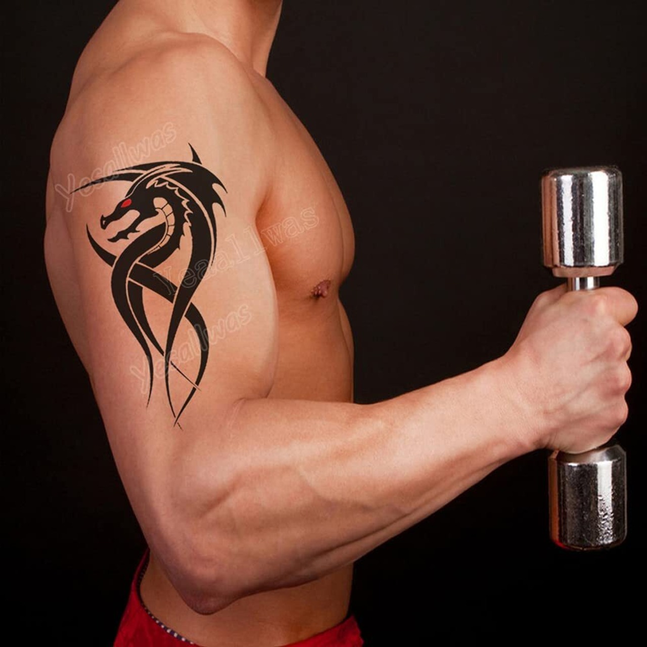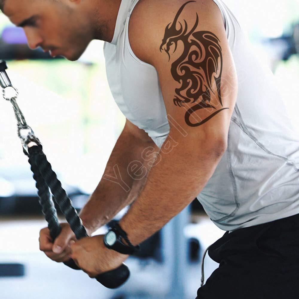Yesallwas タトゥーシール 龍 飛竜 4枚セット 黒 竜 入れ墨シール タトゥーステッカー ボディー 刺青シール 長持ち 防水 メンズ 約12cm×19cm