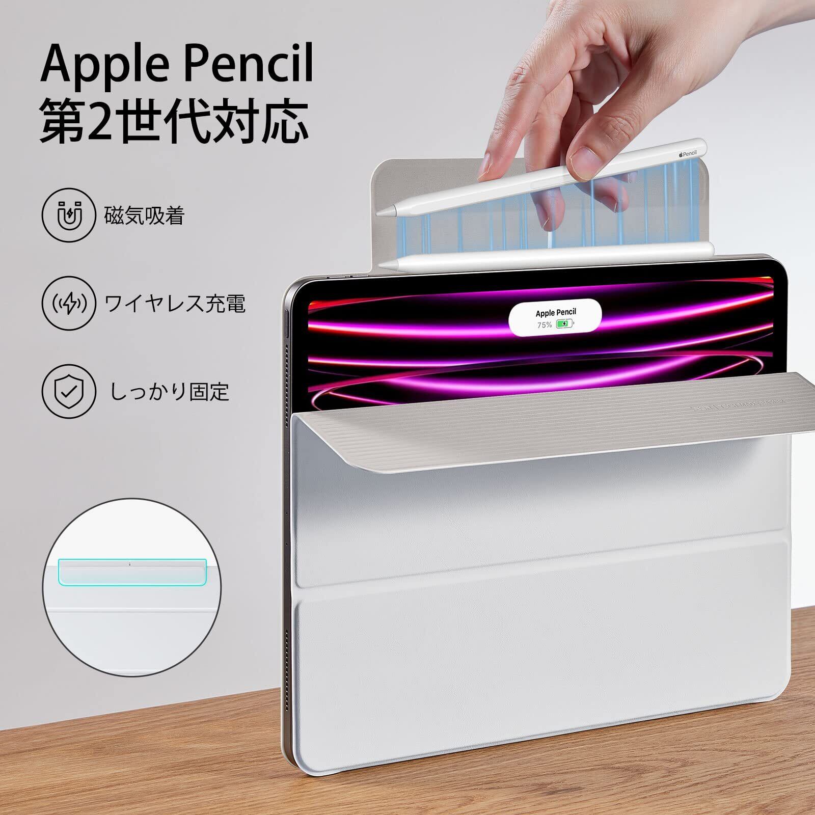ESR iPad Pro 12.9 ケース (2022/2021/2020、第6/5/4世代) iPad Air 13インチ 専用カバー (2025/2024) マグネットス吸着式 Pencil2対応 三つ折りスタンド オートスリープ・ウェイク Rebound 磁気 ホワイト